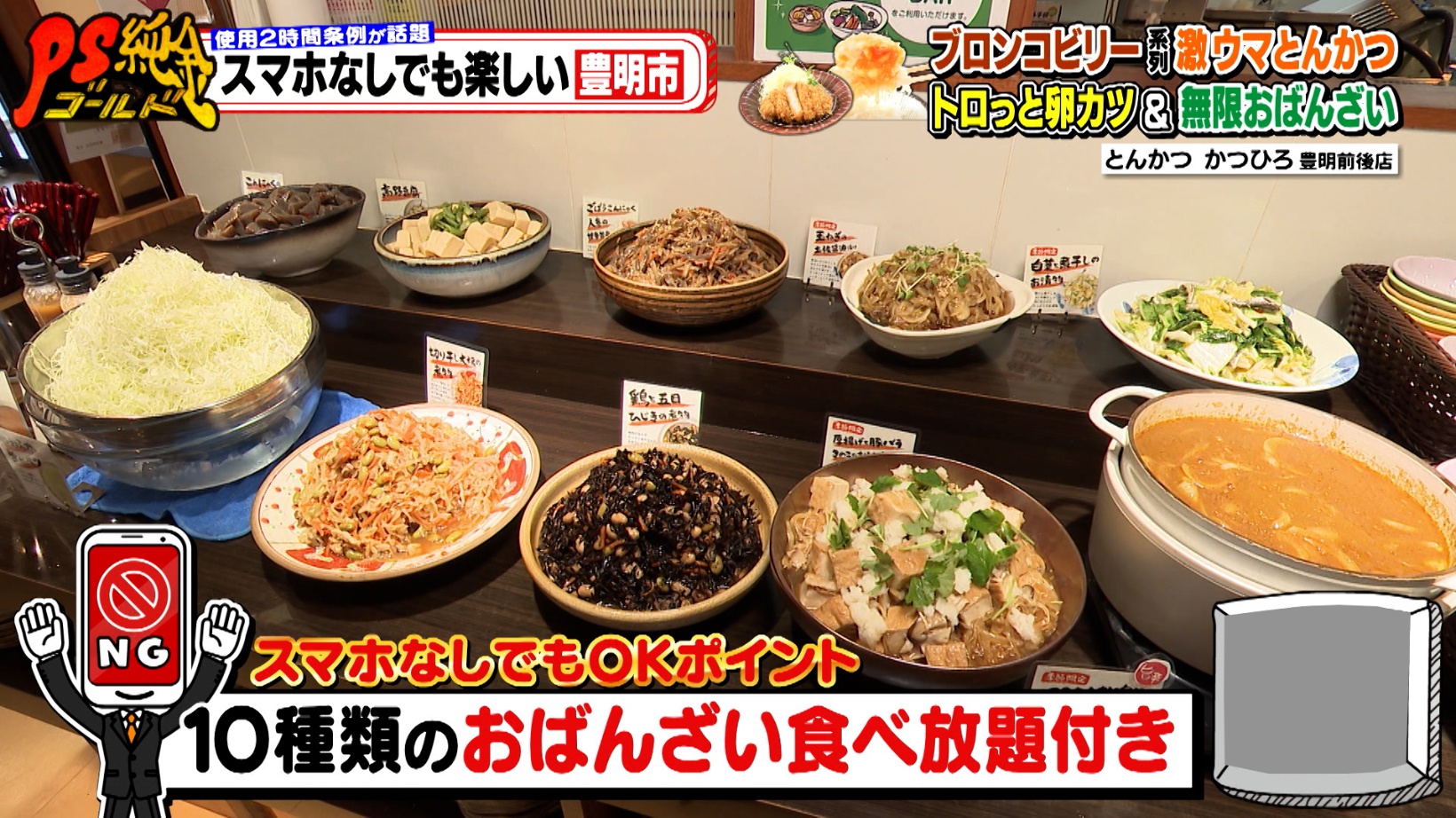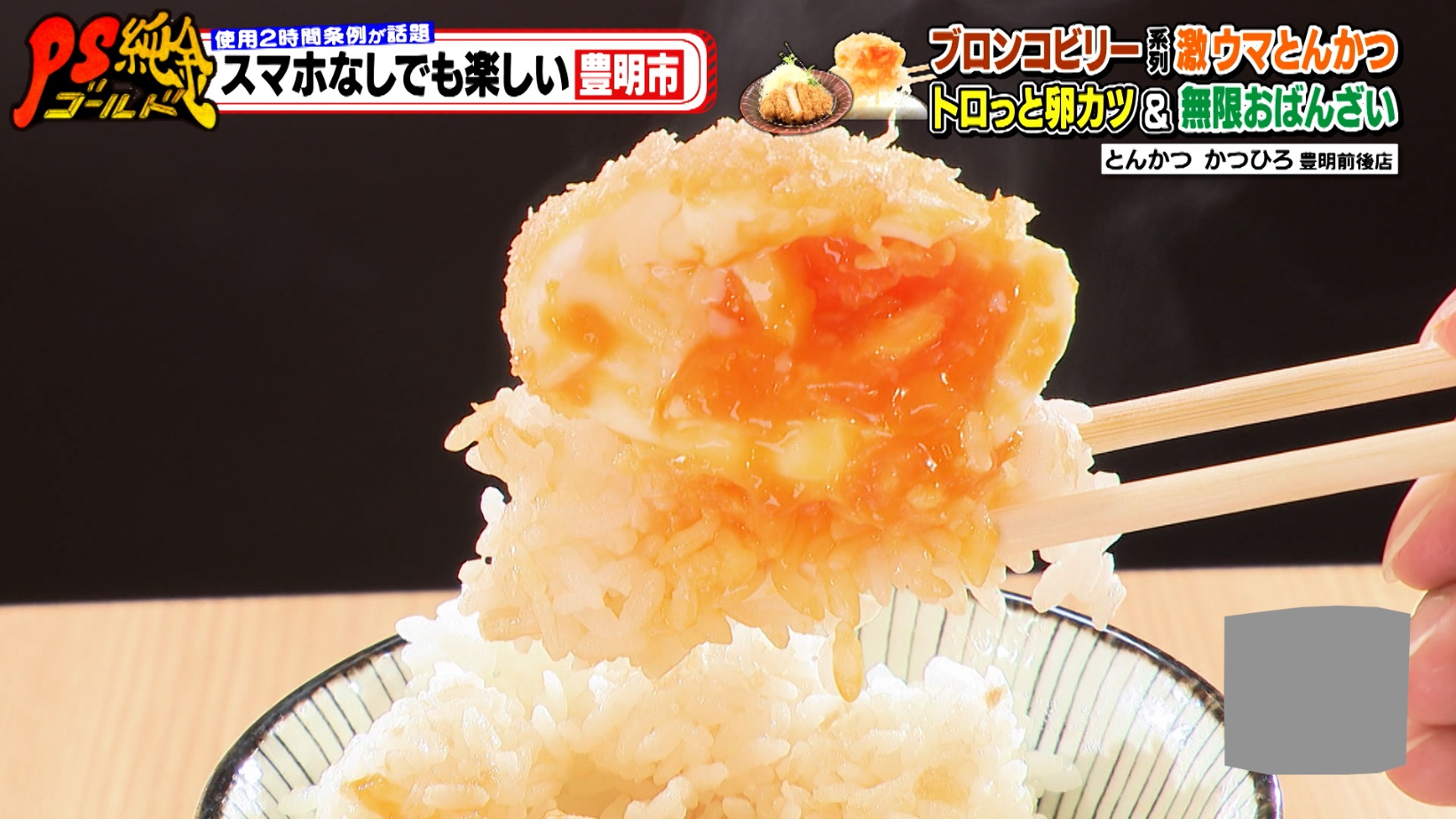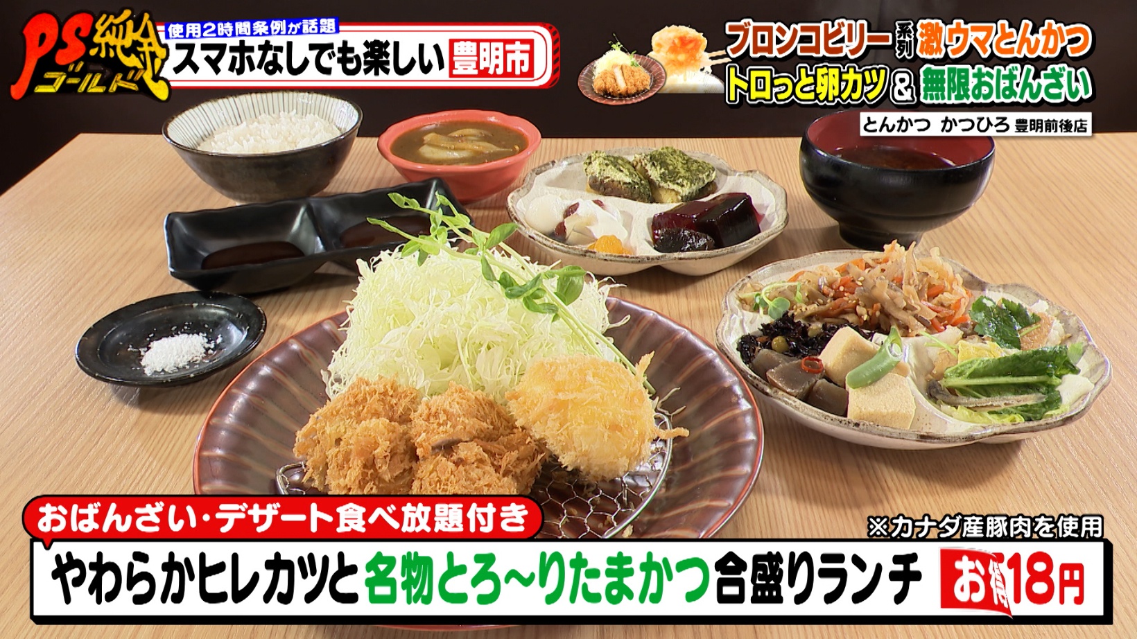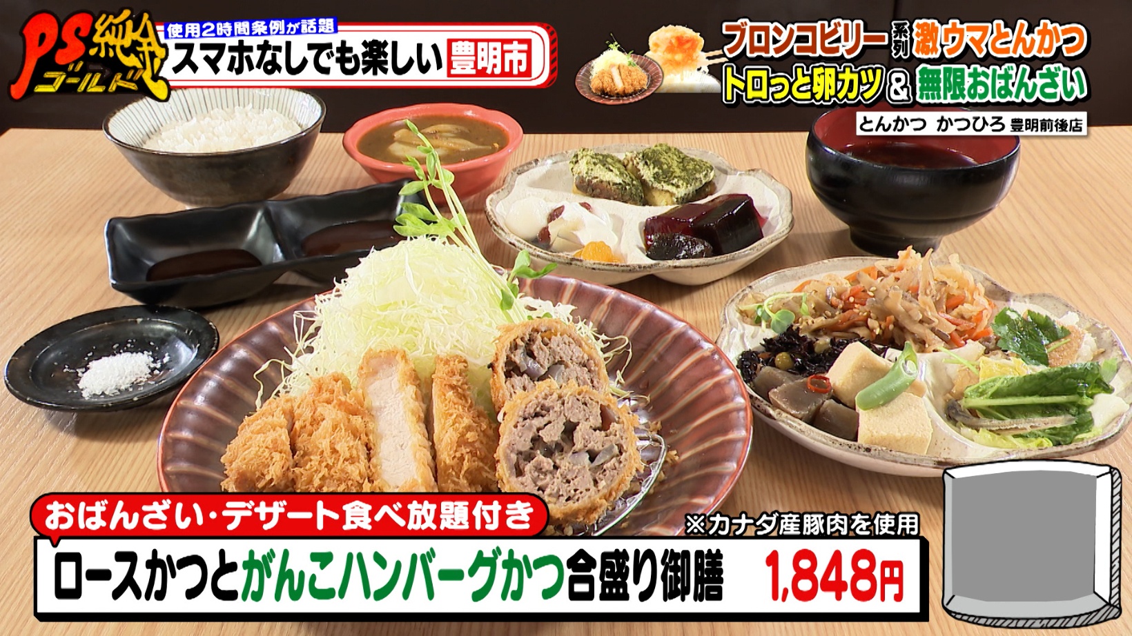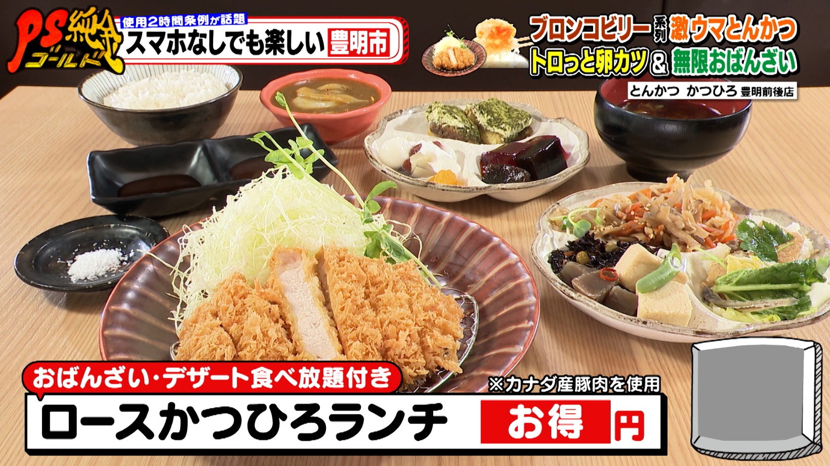 豊明市を訪れ、街ゆく人に「スマホがなくても長時間過ごせるおすすめスポット」をたずねた番組スタッフ。「スマホがなくても2時間は楽しめる」と豊明市民が教えてくれたのが『とんかつ かつひろ 豊明前後店』。番組でおなじみの大盛のり子さんが溺愛する『ステーキハウス ブロンコビリー』の系列店で、絶品とんかつが味わえるお店です。