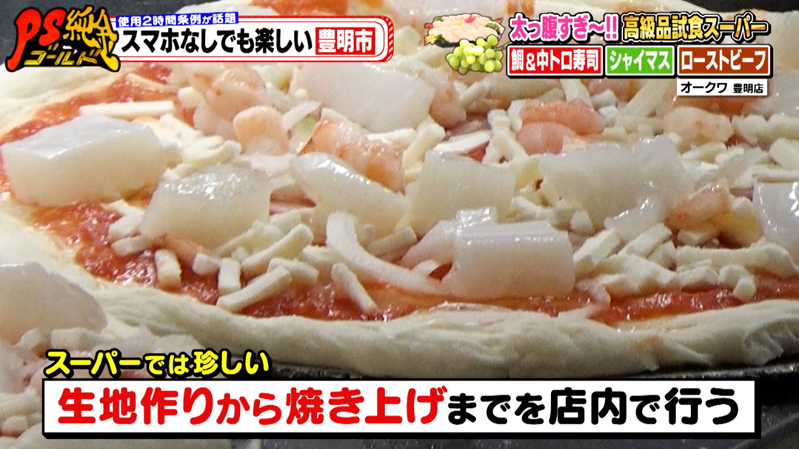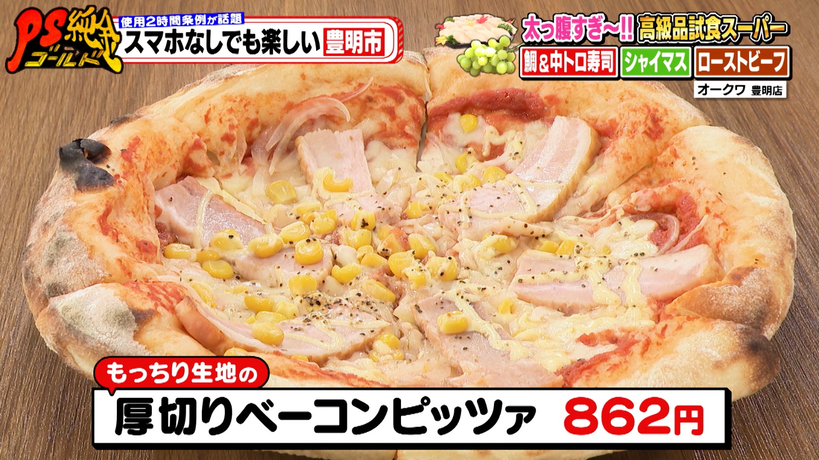 現地を訪れた高田さんと藤森さんがまず注目したのが「厚切りベーコンピッツァ(862円)」などのピザ。スーパーでは珍しく、生地作りから焼き上げまでを店内で行うため、超もっちり食感が自慢の一品です。