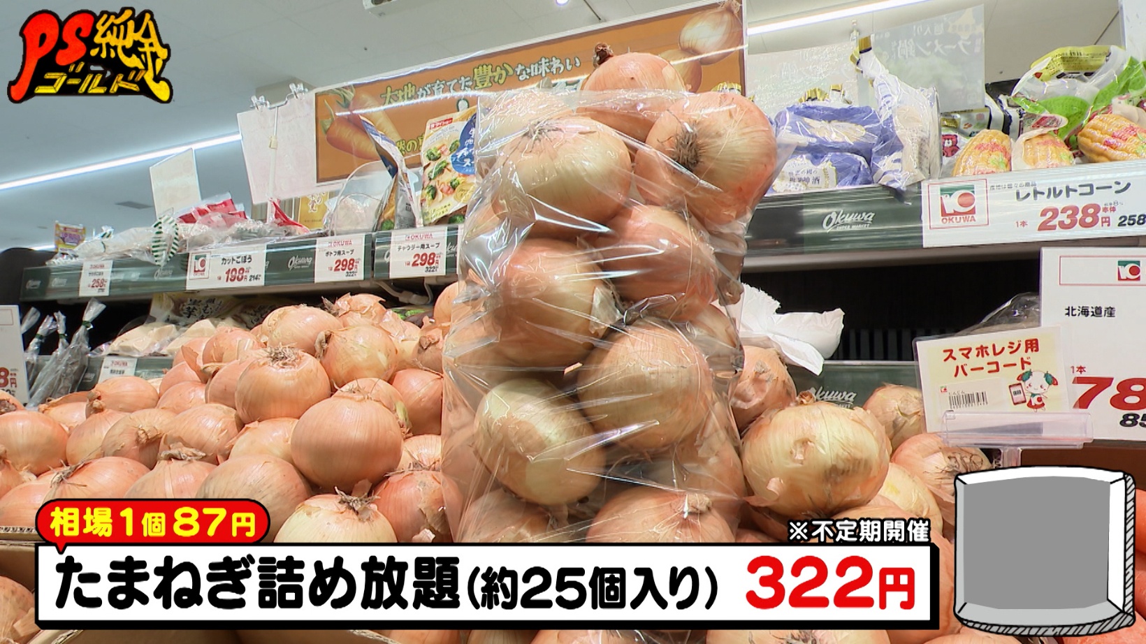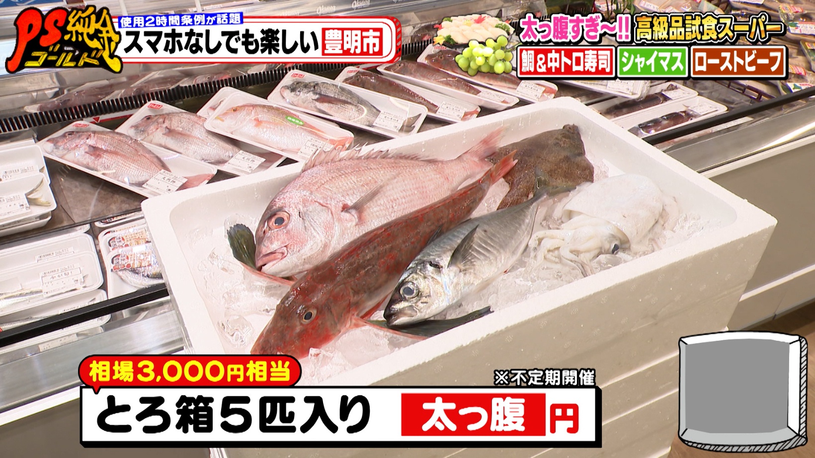 ほかにも不定期開催のセールも。「たまねぎ詰め放題(322円)」や、相場3,000円相当の愛知・豊浜漁港直送の鮮魚が入ったボックス「とろ箱5匹入り(1,080円)」など、遭遇したら即購入したい超お値打ち品ばかりがそろいます。