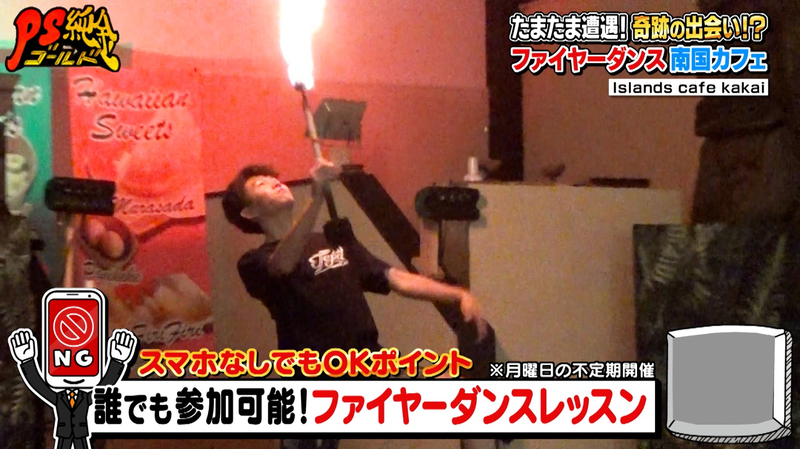 月曜日に不定期で開催されるのは、誰でも参加可能なファイヤーダンスレッスン。店長の近藤さんは「ロケット花火を数万発打ち上げる祭りの代表」だったという異色の経歴も明らかになり、スタジオメンバーはますます興味をそそられるのでした。