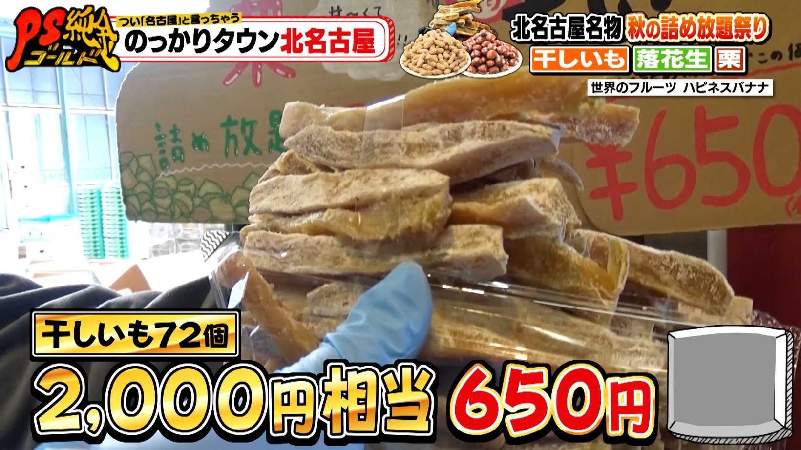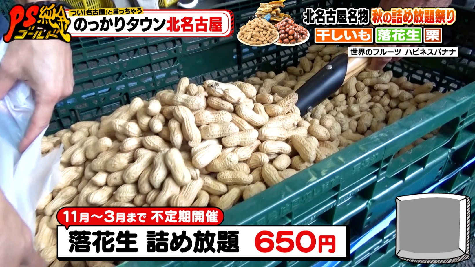 そして、秋冬には超お得なイベントが3つ。シャベルで袋に入れる落花生詰め放題では、1,300円相当(約450粒)が650円に。また、パックに詰め放題の干しいもは、2,000円相当(約72個)が650円、甘栗の詰め放題では、2,000円相当(約50個)が750円とかなりお値打ちです。この3大イベントでは、店長の森瀬さんが「おまけ」を大量追加するのが恒例。北名古屋市民が大興奮するのも納得です。