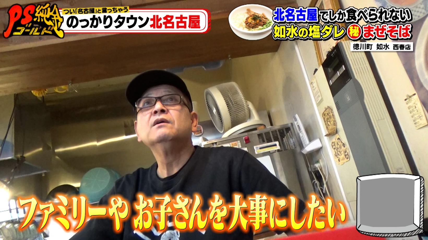 その西春店限定メニューは、まぜそば用太麺に、特製塩だれとニンニク入り香油を合わせ、大量の自家製ミンチとタマネギ、メンマ、ネギがのせた”如水流の台湾まぜそば”。 店長が「本店にはない!」というオリジナルメニューですが、なんとメニュー名は「名古屋まぜそば(1,050円)」。スタジオからは「北名古屋つけてよ」という声があがるのでした。