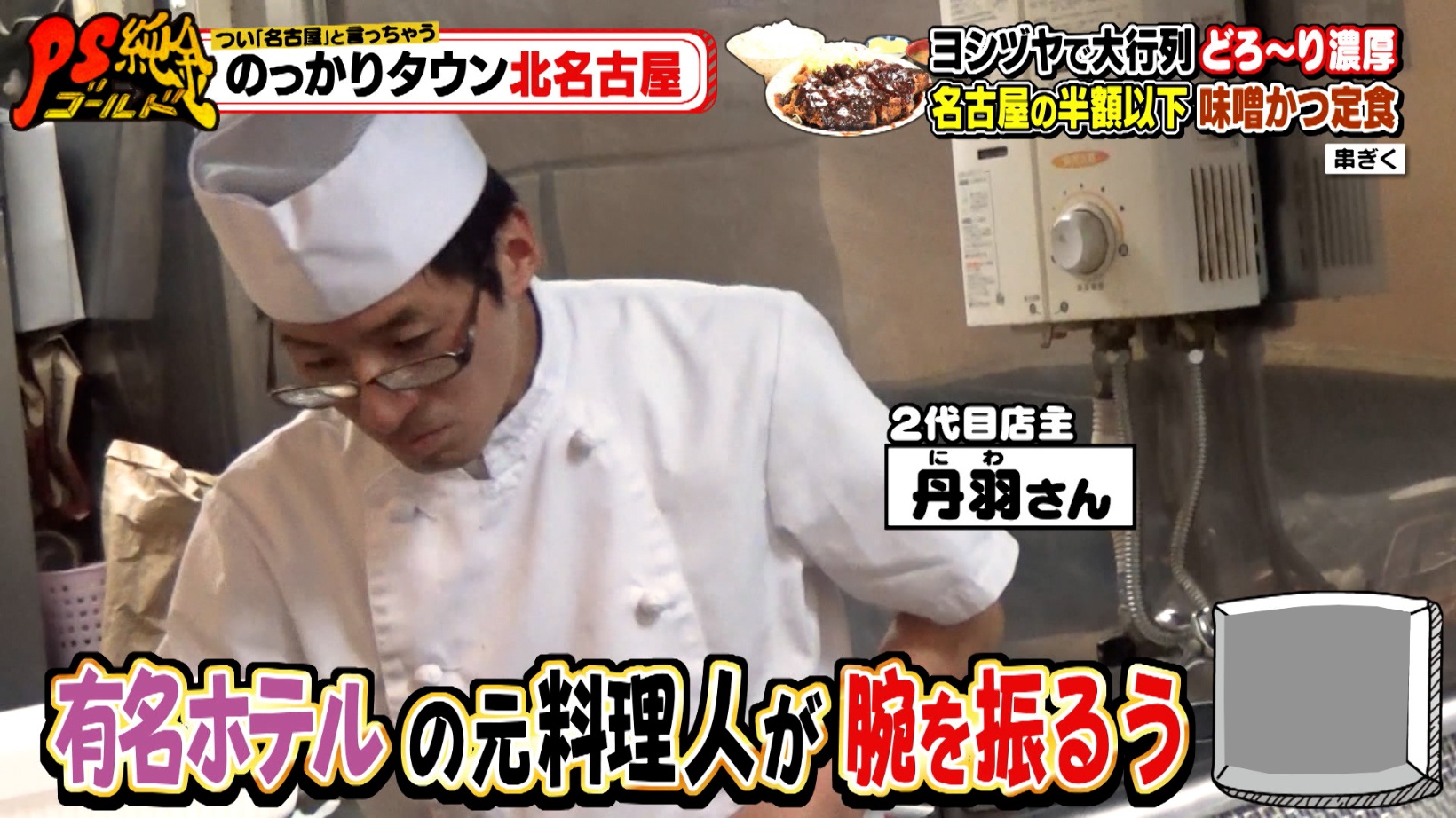 有名ホテルの元料理人でもある2代目店主、丹羽さんが腕をふるいます。「とんかつ定食(950円)」は、丁寧な仕込みで肉の柔らかさを追求したとんかつと、先代から受け継いだどて煮の味噌ダレがたっぷりかかった一品。とんかつ2枚の「ジャンボとんかつ定食(倍盛り・1,150円)」は実質プラス200円という破格の安さです。