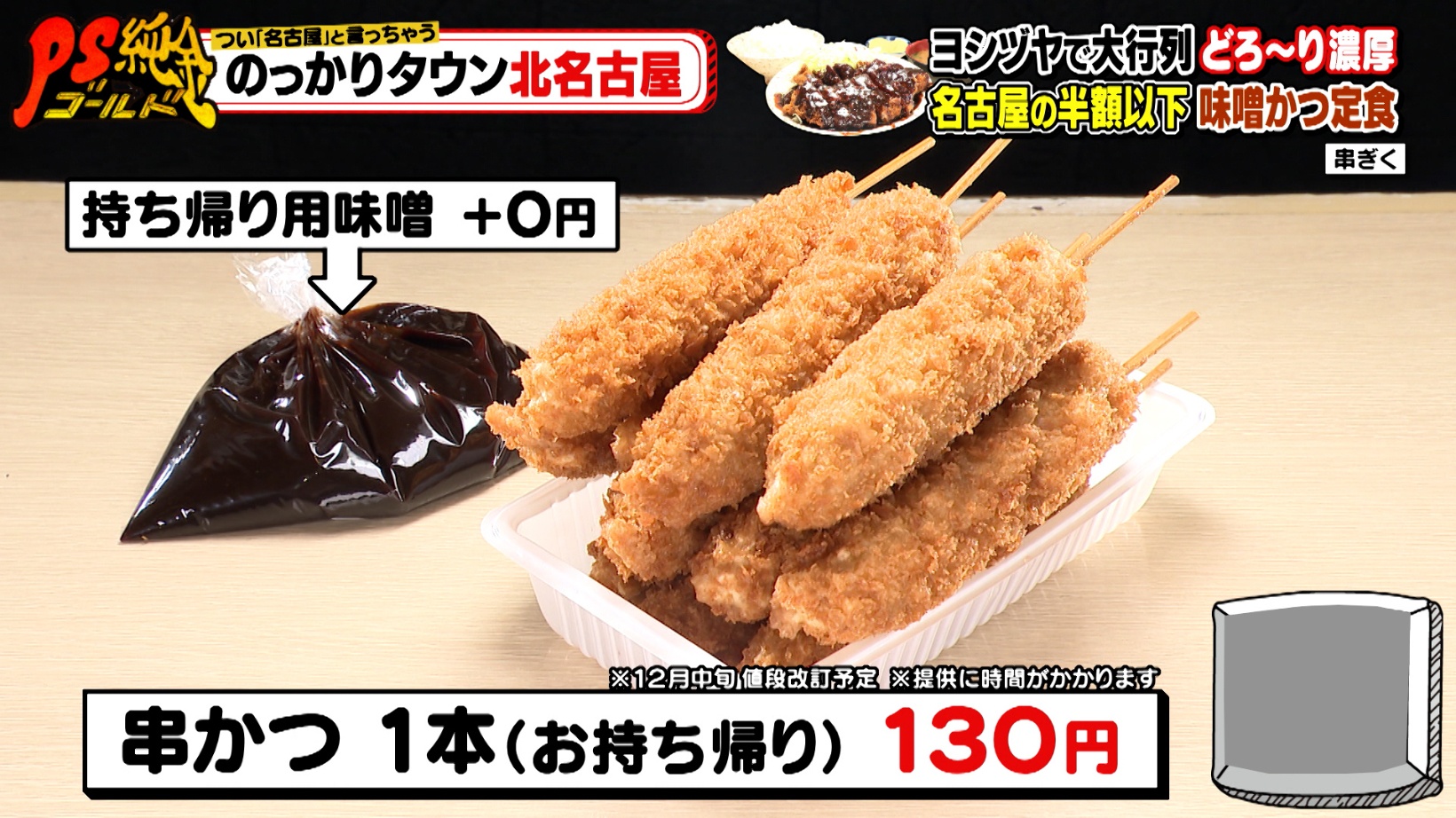 また、「串かつ定食(750円)」やテイクアウトが大人気の串かつも。「串かつ(1本・130円※お持ち帰り)」は味噌が0円でつくので、家呑みやイベント時にぴったりなのだとか。人気の持ち帰りは、平均30分の待ち時間がありますが、常連客は先に注文し、その間に『ヨシヅヤ』で買い物などをして過ごしているようです。