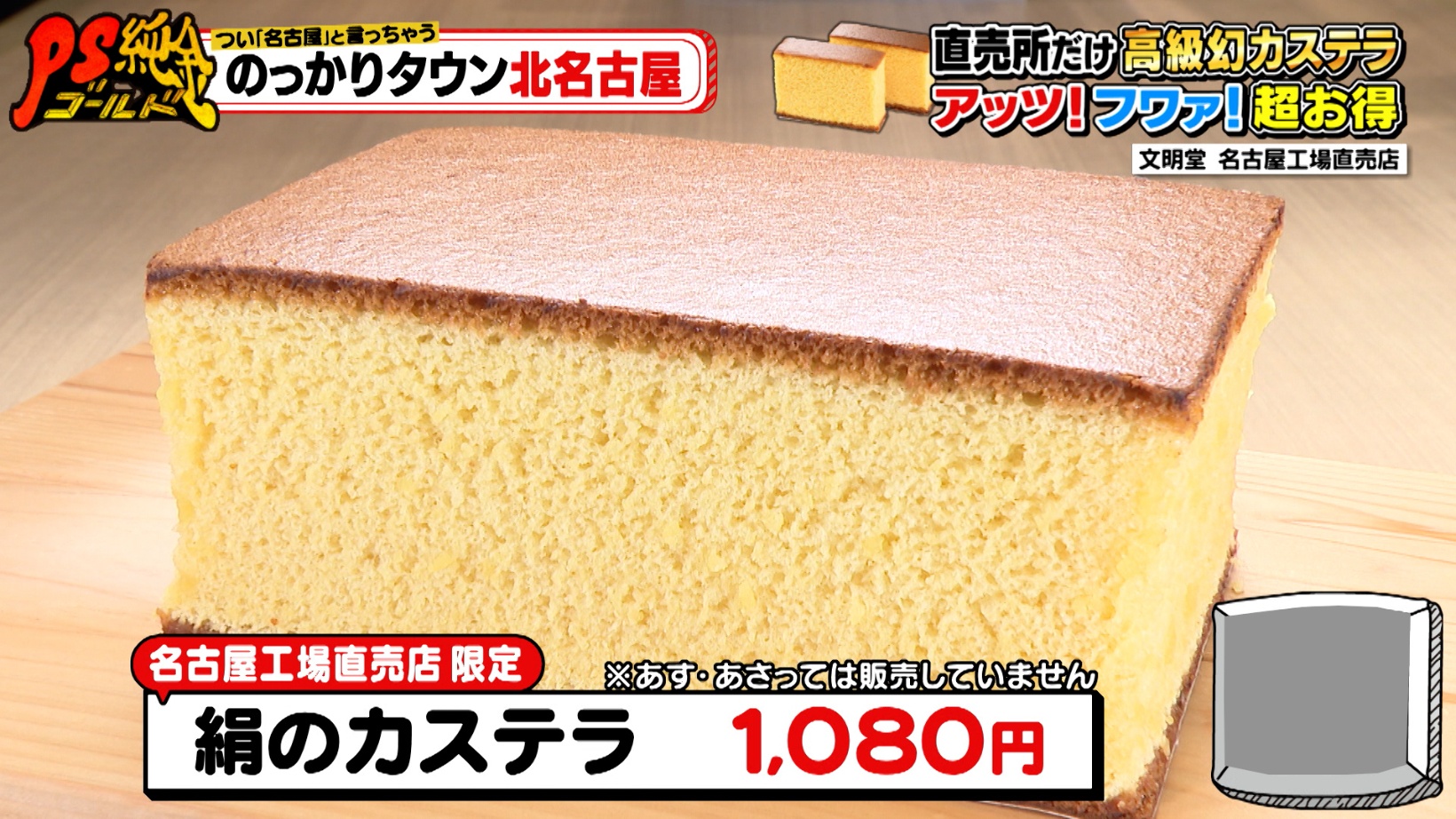 直売店限定の「絹のカステラ(1,080円)」は焼きたてならではのフワフワ食感。また、通常1,500円相当の「切り落としカステラ」は半額以下で手に入ります。
