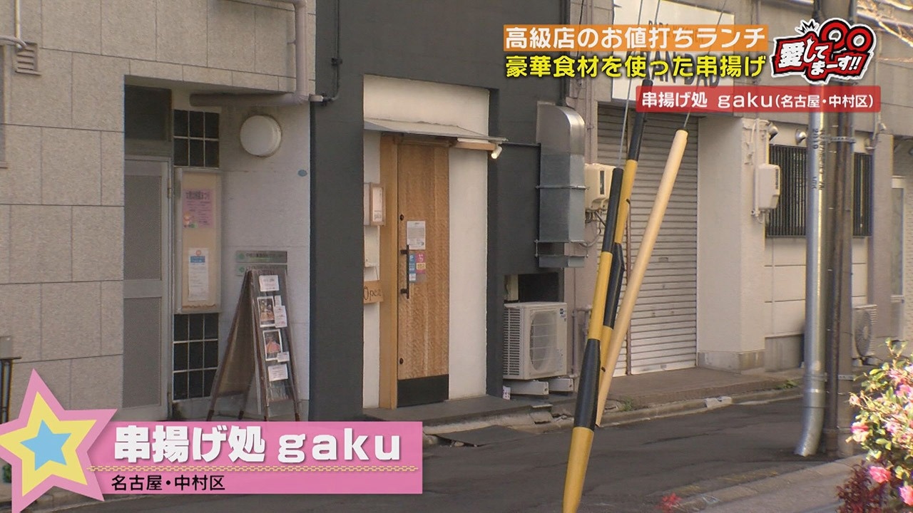 まず、紹介するのは、名古屋市中村区の地下鉄“中村区役所駅”近くにある、昨年3月にオープンした【串揚げ処 gaku(がく)】。