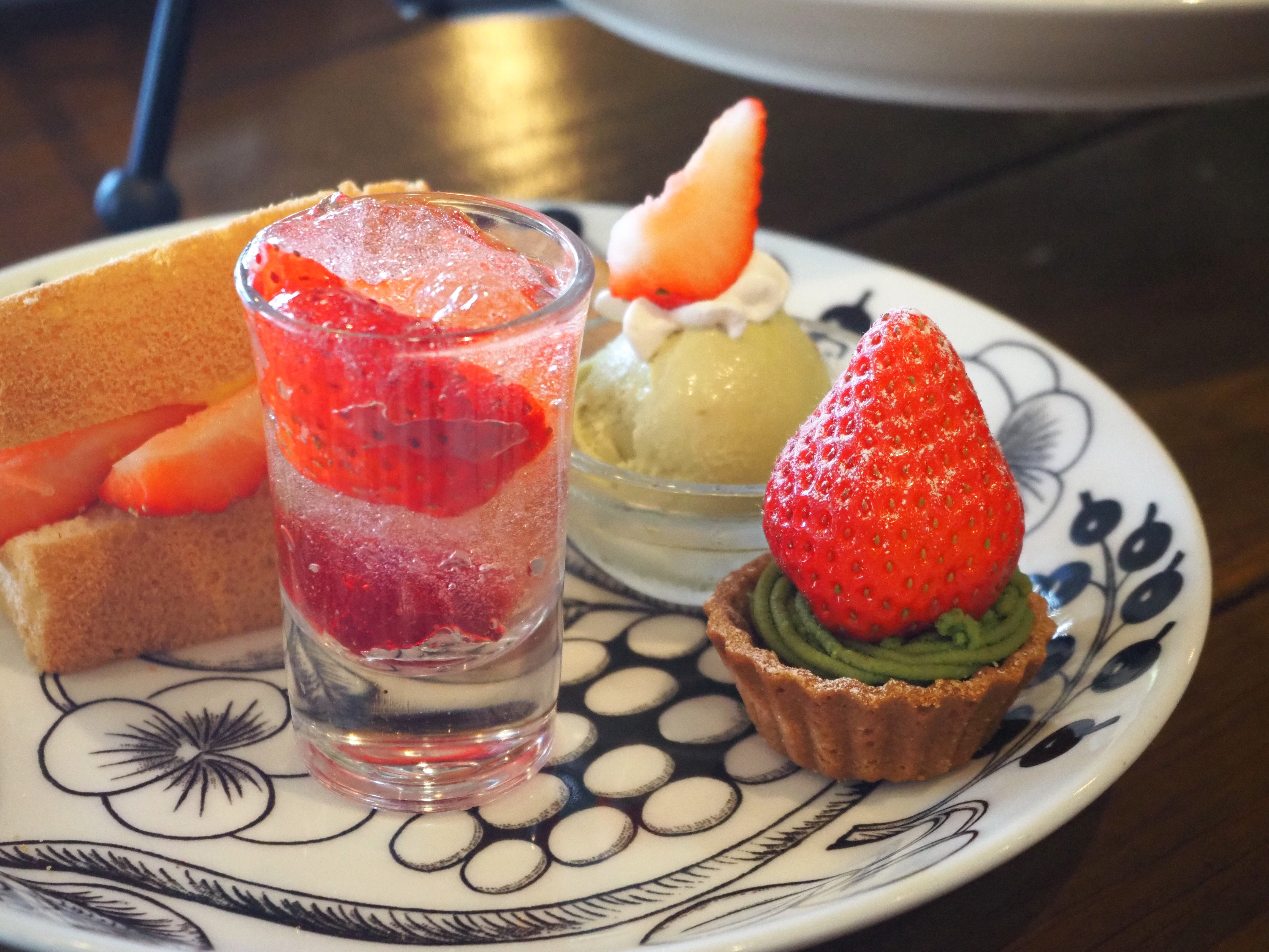 また、イチゴと相性の良い花「バラ」やハーブをエッセンスとして起用。バラの白ワインジュレ、イチゴとバラのブランマンジェ、ローズマリーのブールドネージュなど香りを重ねた構成となっています。