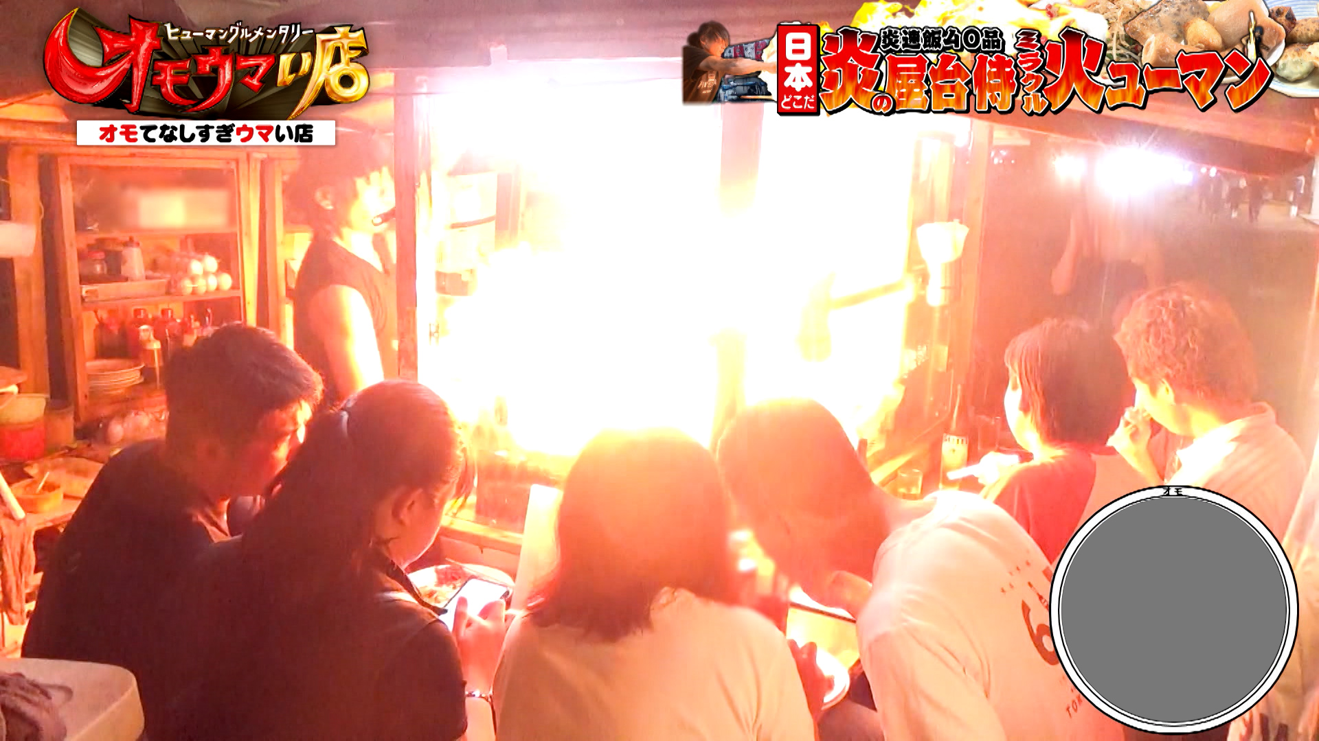 調理場から尋常ではないほどの炎が立ち上がり、その迫力に思わずお客さんも目を奪われます。豪快な調理風景に、スタジオでは「あの作業、見たことない」「火の魔術師だ」と笑いが起こります。