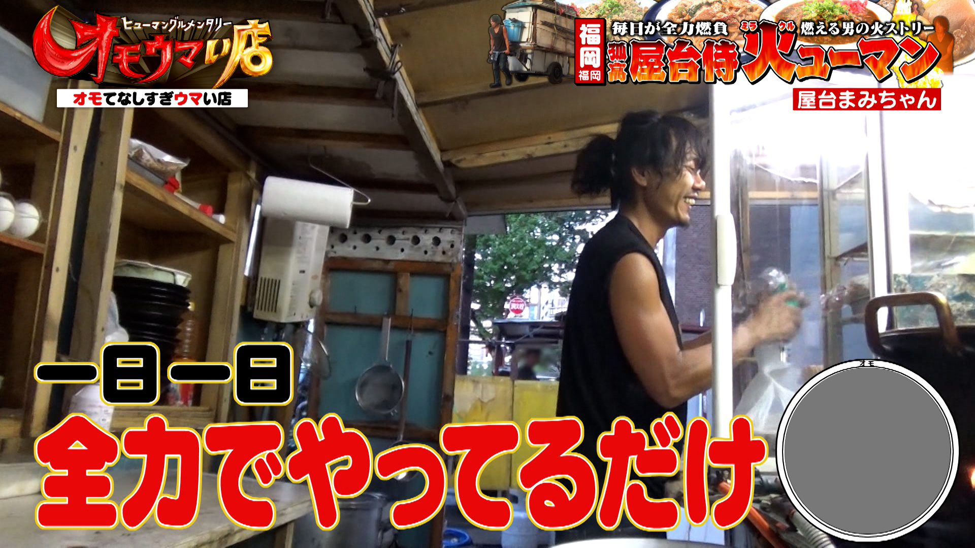 福岡県福岡市「屋台まみちゃん」炎の屋台侍!爆炎で焼き上げる焼きぶた&先代から継いだ豚骨ラーメン『オモウマい店』
