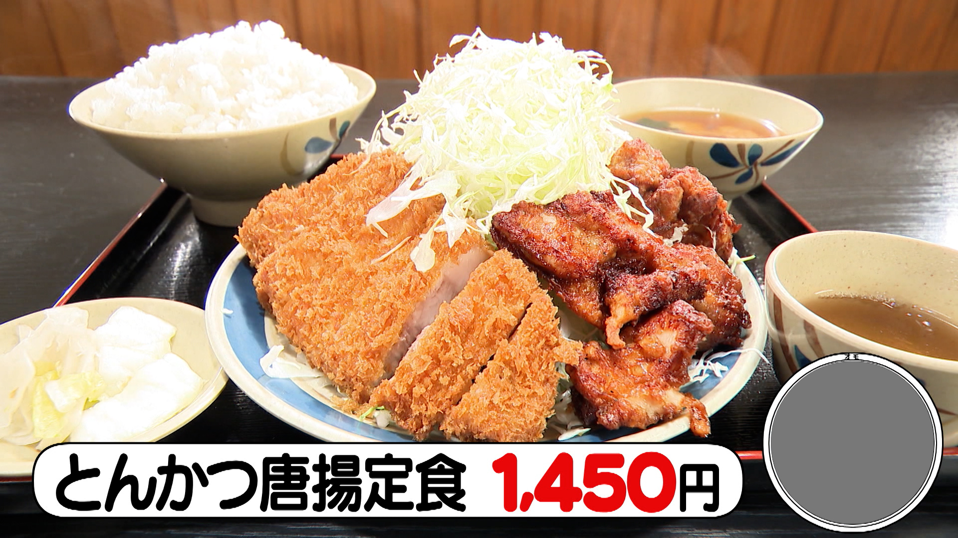 また、お客さんが「世界一の唐揚げ」と太鼓判をおす唐揚げ(5個)と、とんかつの両方が味わえるのが「とんかつ唐揚定食(1,450円)」。酒やしょうゆ、ブラックペッパー、おろしショウガ、ニンニクなどで味付けされた唐揚げは、「依存性ある」と言われるほどクセになる味わいです。