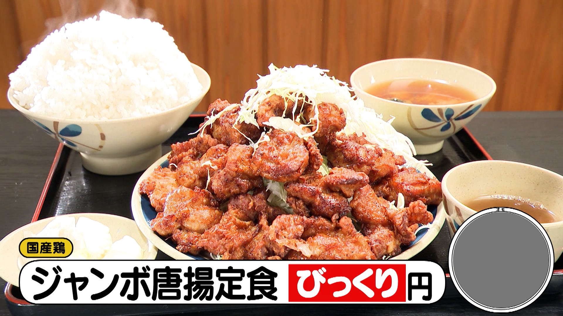 豚ロース約170gのカツと、約40種のスパイスを使った自家製カレーが楽しめる「ジャンボカツカレー(1,500円)」も人気メニュー。カレーは別皿の”追いカレー”付きです。ほかにも、唐揚げ15個の「ジャンボ唐揚定食(1,450円)」や、豚ロース約170gの「ジャンボカツ丼(1,400円)」などボリューム満点でお得なメニューが登場し、スタジオから「安い!」と驚きの声が上がるのでした。