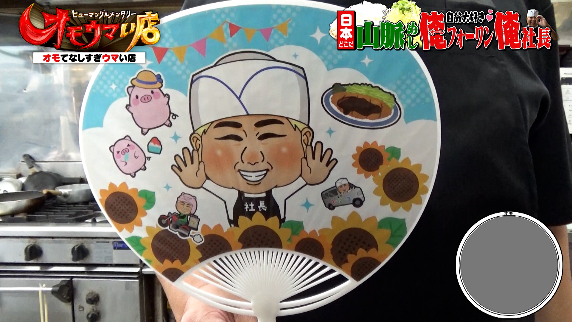 店主は「自分大好きだから俺」と笑い、場の空気を和ませる存在。自分の似顔絵入りのうちわやステッカーなど、オリジナルグッズを配ってお客さんを楽しませています。初対面の番組スタッフに対しても「友達だもんな」と声をかけるほど気さくです。