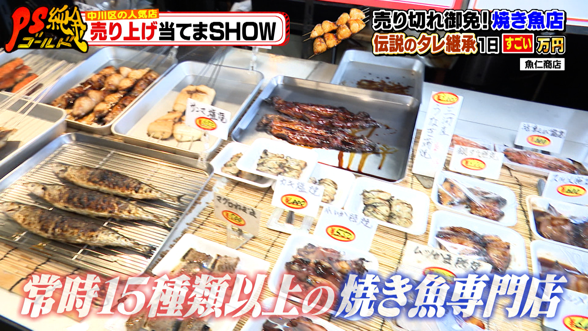 創業17年の『魚仁商店』は、常時15種類以上の焼き魚をそろえる専門店です。店主の天野さんは、中川区の名店『魚梅商店』(現在は閉店)の味を受け継ぎ、17年前に店をオープンしました。名店の味を継承する伝説のしょうゆダレで焼き上げます。