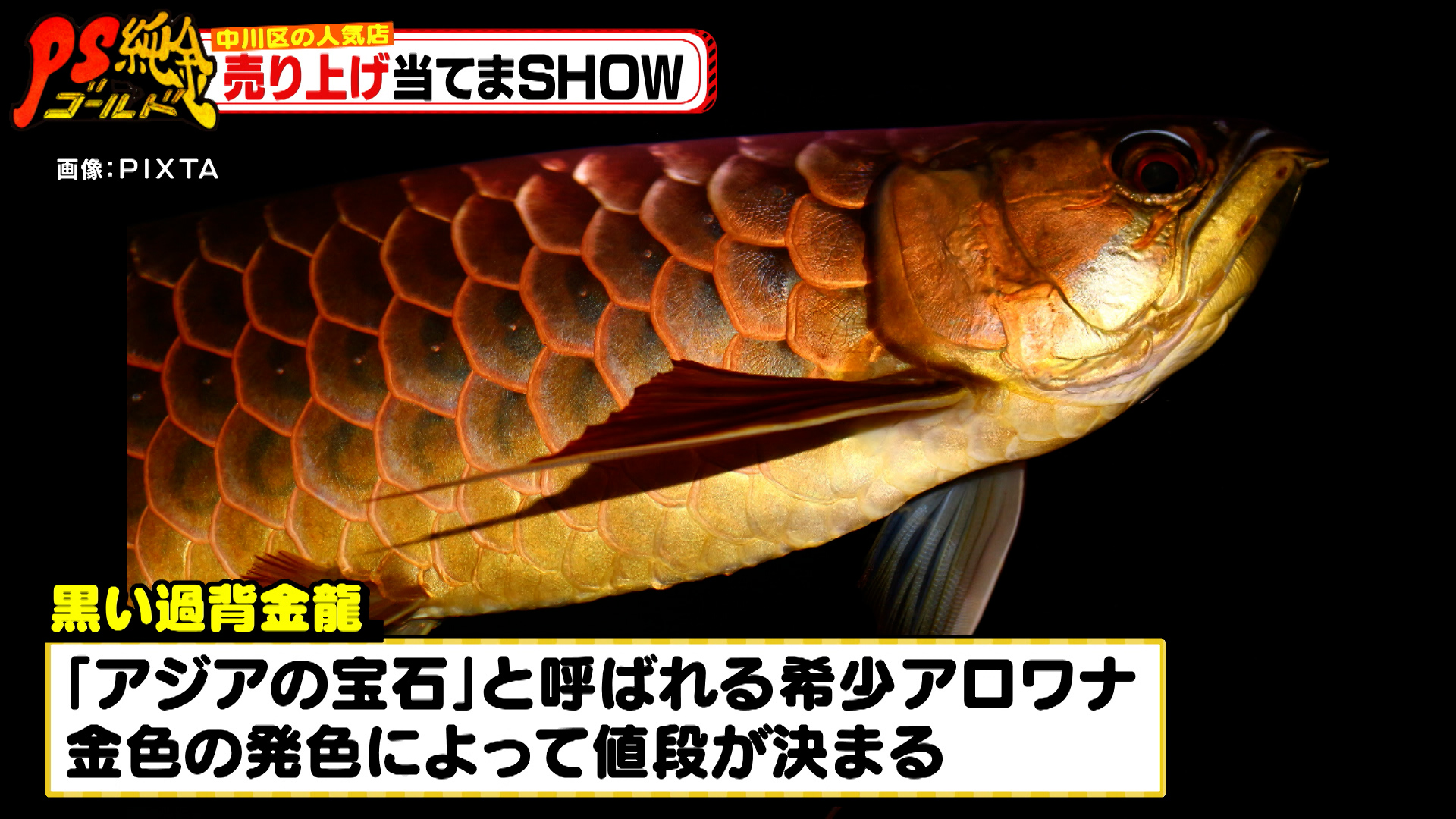 そして、こちらのお店の売り上げを支えるのはエサ用の魚。1匹18円ですが、多い方では500匹購入し、9,000円の売り上げになります。50万円や4万円といった予想があるなか、高額な熱帯魚も扱うこの店の1日の売り上げは約8万円。普段はエサ用の魚の売り上げがメインですが、高級魚が売れた日はさらにアップ。「黒い過背金龍」が売れた日は、過去最高売り上げ99万円となったのでした。
