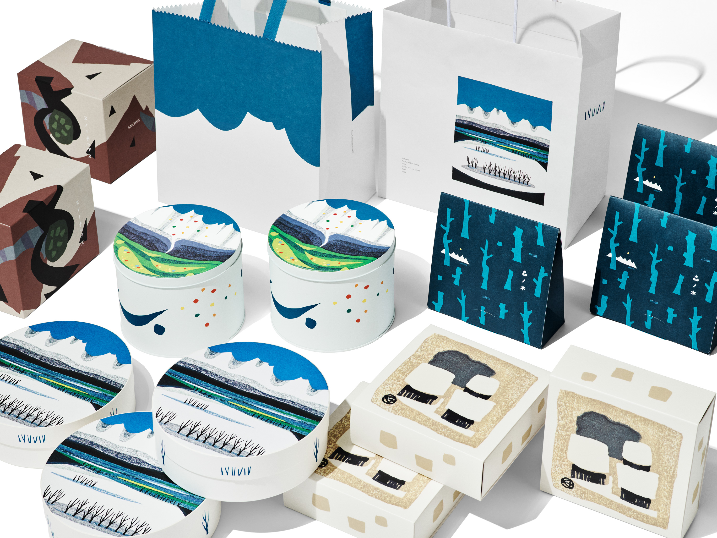 雪や山など、どこか懐かしいビジュアル。パッケージには、“山の版画家”こと、大谷一良さんの作品が使用されています。北海道の冬を象徴する表現を探すなかで出会い、その世界観に共鳴したことから、SNOWSは誕生時から大谷さんの版画と共に歩んできたといいます。