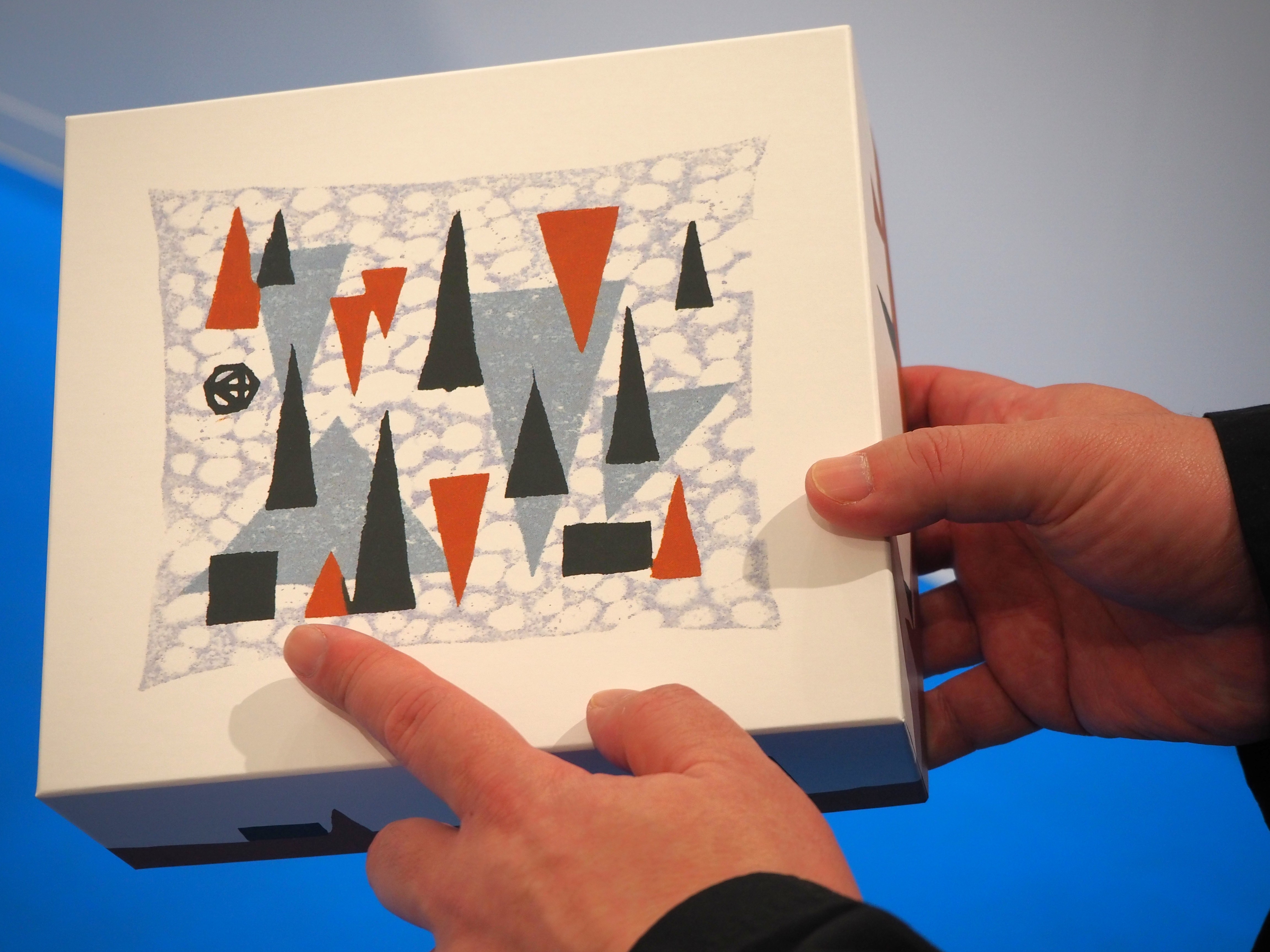 ショッピングバッグにも版画の一部が使われ、正面にブランド名などはあえて入れず、作品を主役としたデザインに。アートを持ち歩くような感覚を大切にしています。