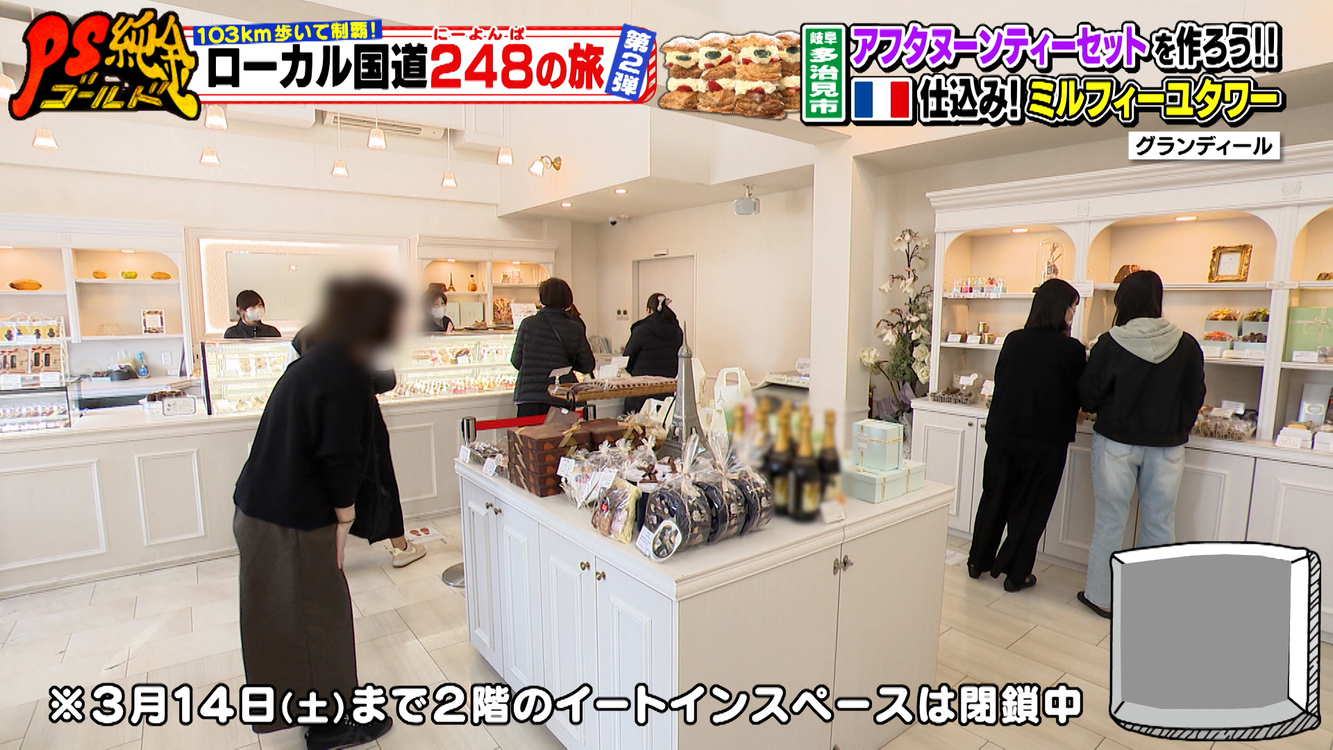 2026年3月5日の放送分は「ローカル国道制覇の旅~にーよんぱ編~」第2弾!蒲郡市と岐阜市を結ぶ全長103kmの国道248号線、通称「にーよんぱ」はウマいお店が立ち並ぶグルメストリート。その248号線沿いで、アフタヌーンティーを楽しむ、「ヌン活」にぴったりの絶品スイーツを探す旅を決行。歩いて見つけたとっておきのグルメ情報をお届けします。