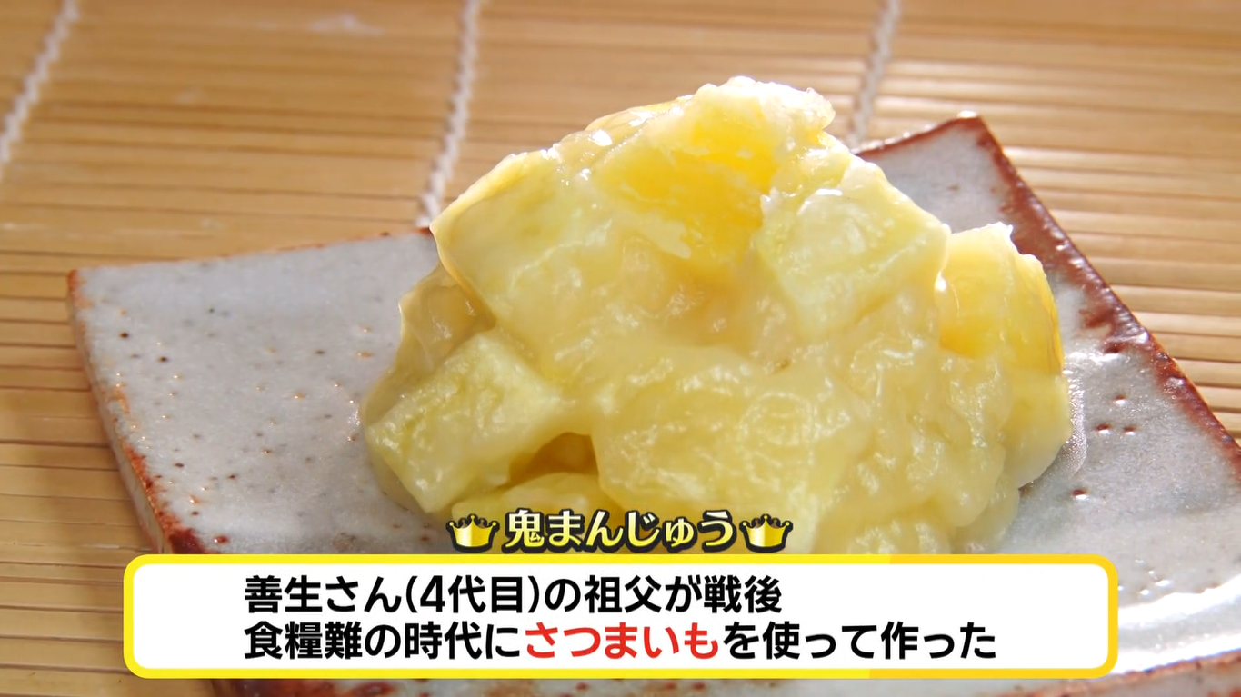 考案したのは、4代目・稲垣善生さんの祖父。戦後の食糧難の時代に、“ご飯の代わりだったさつまいもを使って、まんじゅうを作れないか”と、考えたのがきっかけだったといいます。今は善生さんと、善生さんの息子・5代目の忠善さんが、その味を守り続けています。