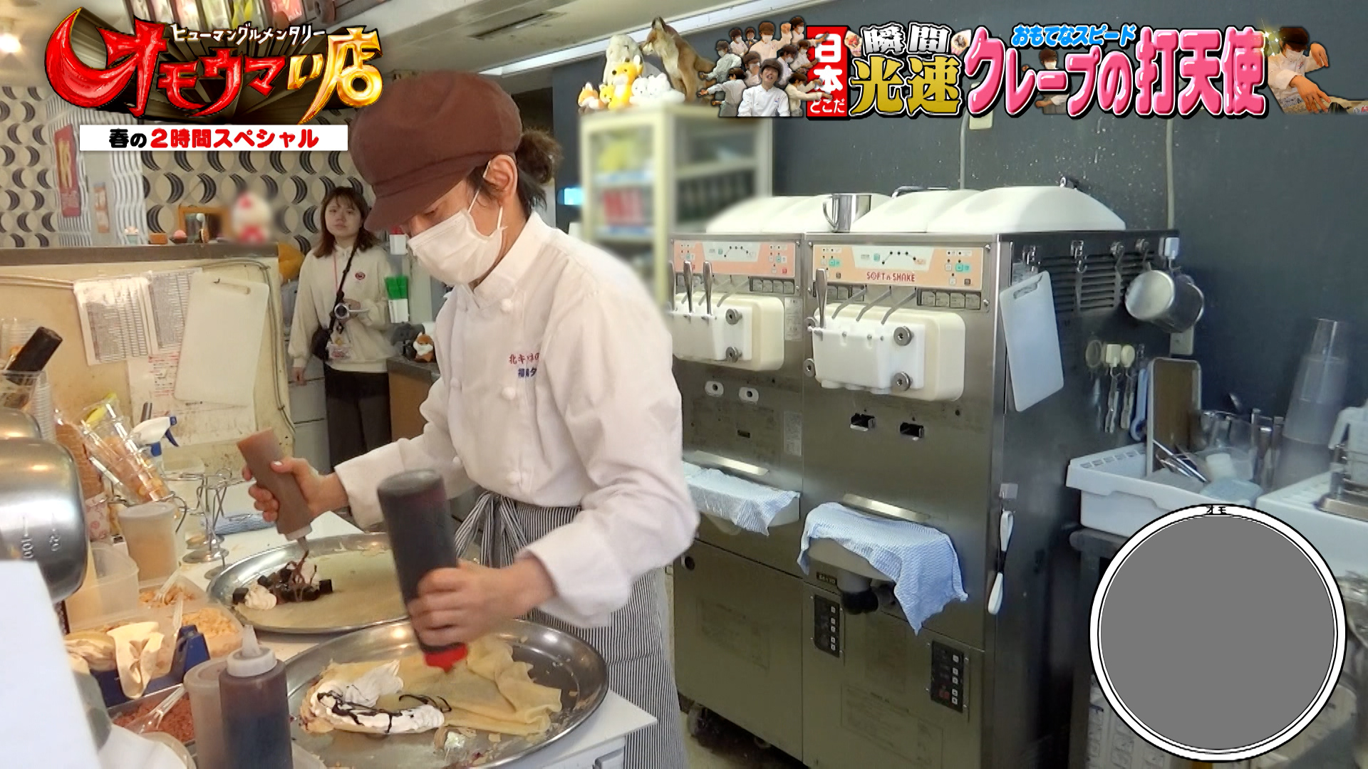 クレープを圧倒的なスピードで仕上げていくのが店長の石橋さん。クレープをつくりながら、レジ打ちもテキパキこなす店長の様子に、スタジオからは「すべての所作が速い」と驚きの声が上がります。