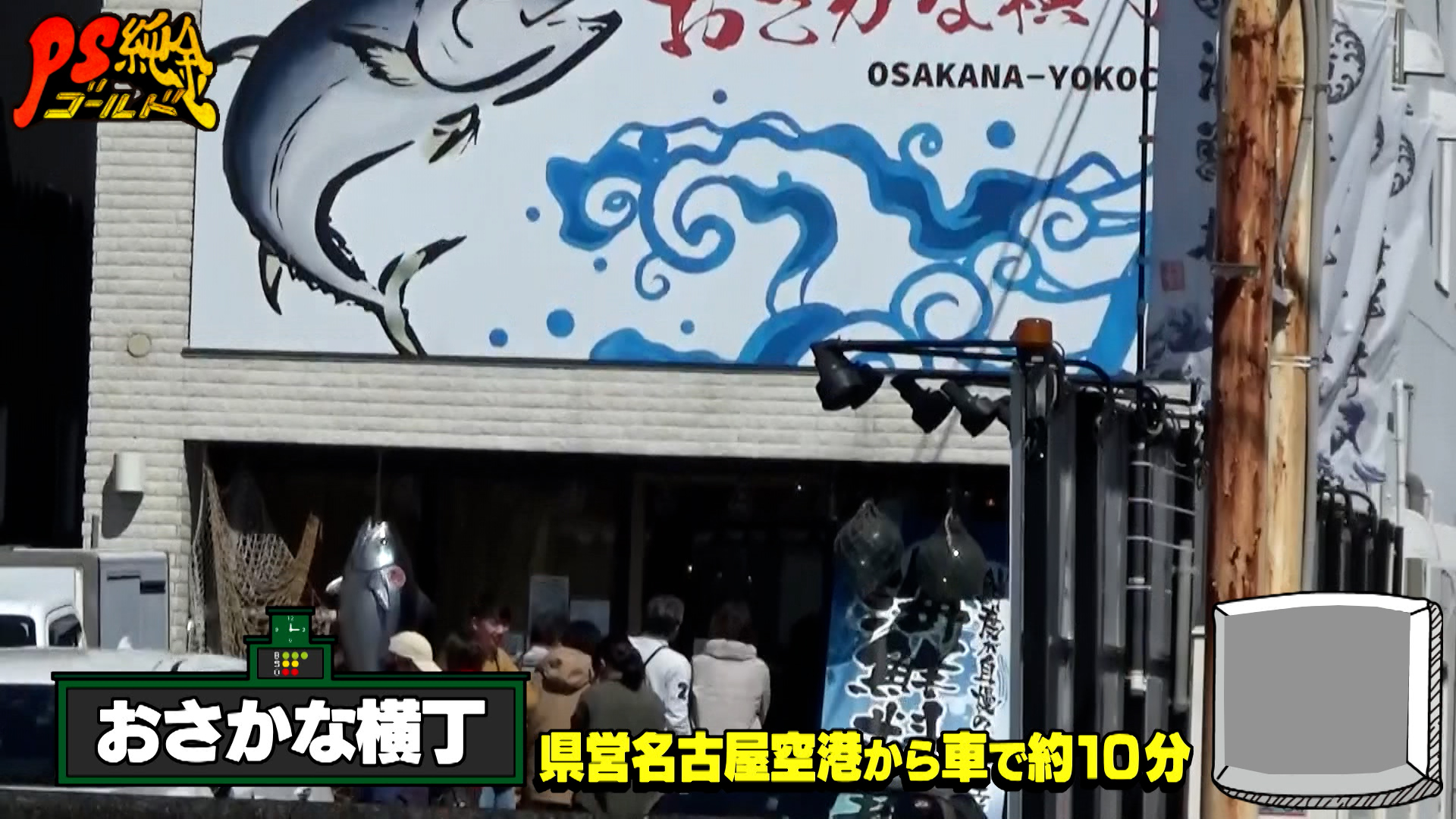 続いてやってきたのは、大谷さんも降り立った県営名古屋空港から車で約10分、名古屋圏の台所である北部市場に隣接する『おさかな横丁』。本格海鮮料理をお値打ち価格で味わえる人気店で、店頭にはたくさんのお客さんが並んでいます。