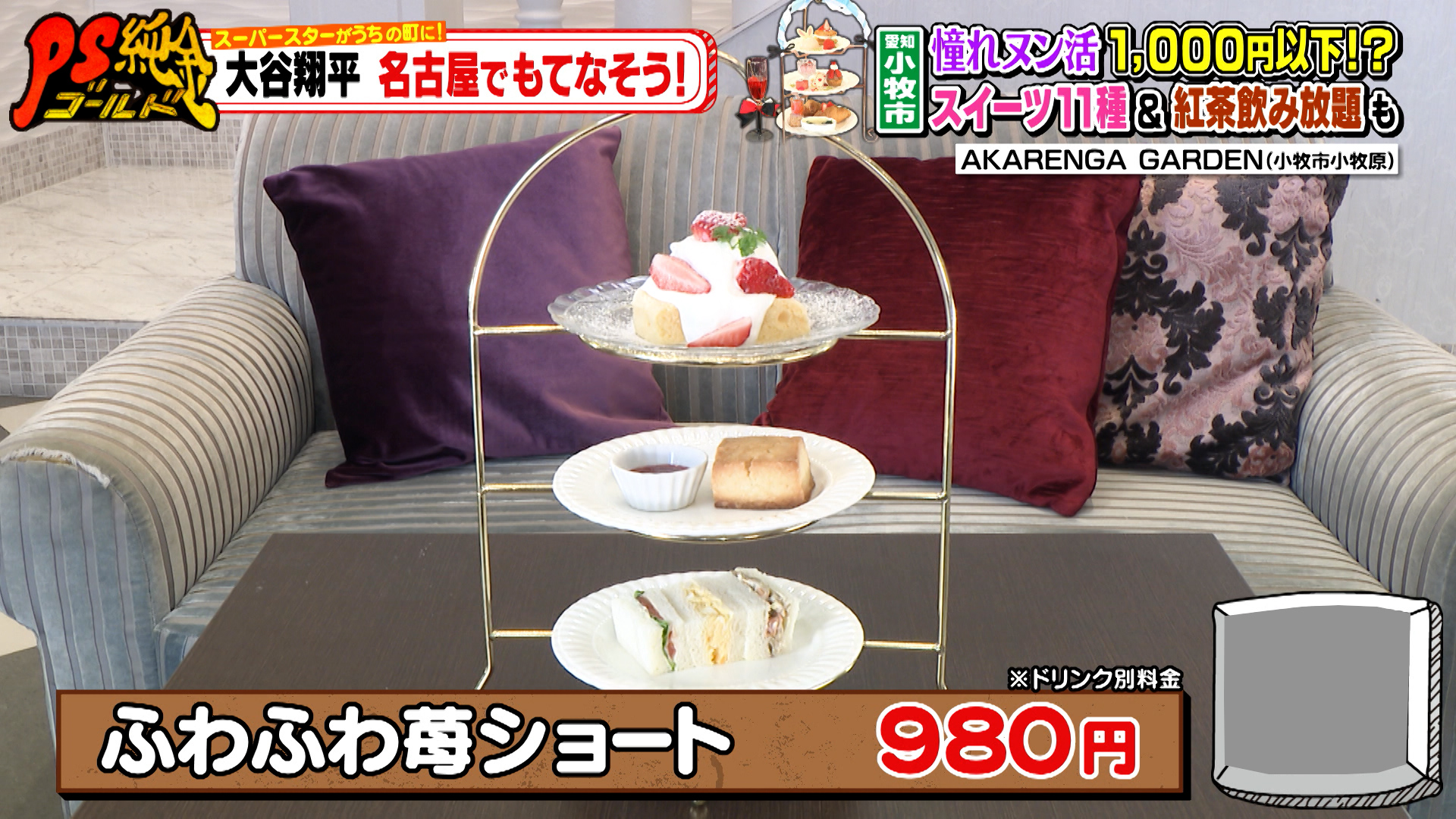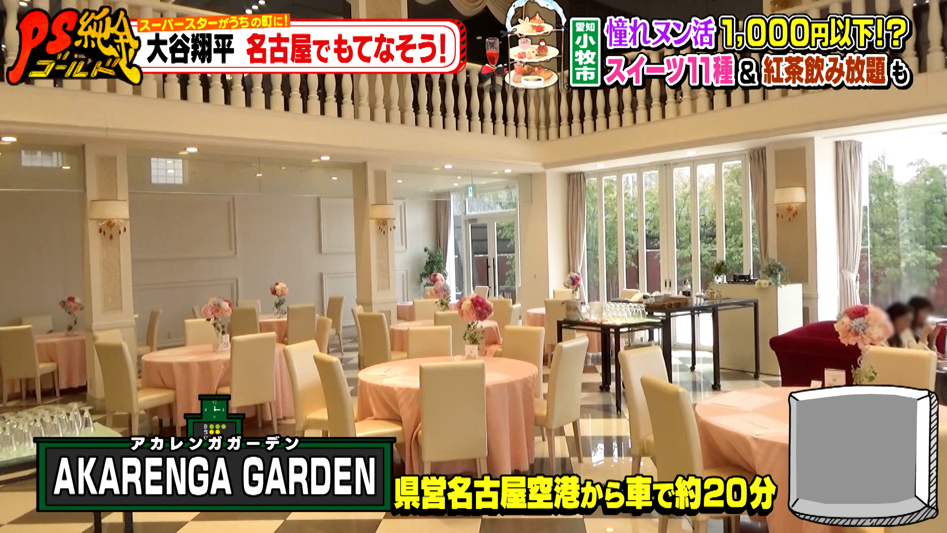 お次は県営名古屋空港から車で約20分の『AKARENGA GARDEN』へ。格安で豪華なアフタヌーンティーを楽しむ活動、通称ヌン活ができ、セレブ気分を味わえるお店です。
