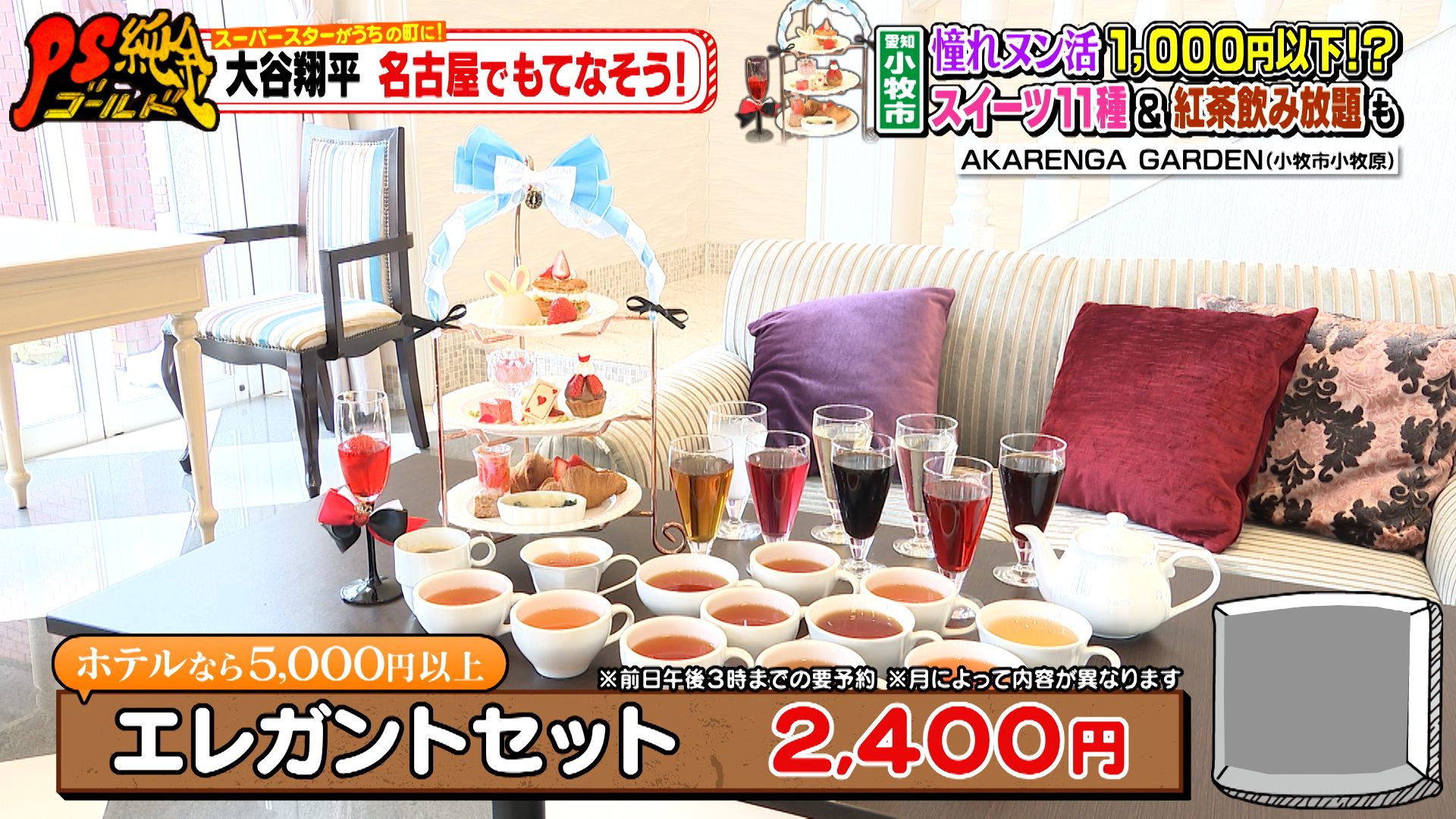 そしてお店のスタッフが「大谷さんにおすすめしたい」と教えてくれたのが「エレガントセット(2,400円)」。2時間の飲み放題付きで、ドリンクは紅茶だけでも12種類が用意されています。ホテルであれば5,000円以上する豪華な内容を、半額以下で楽しめるお得なセットです。