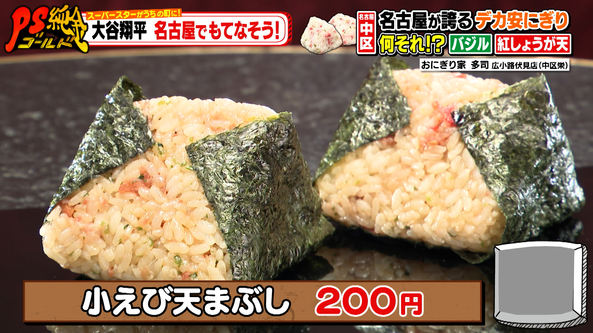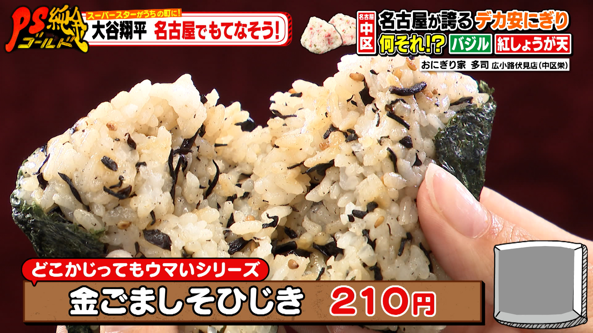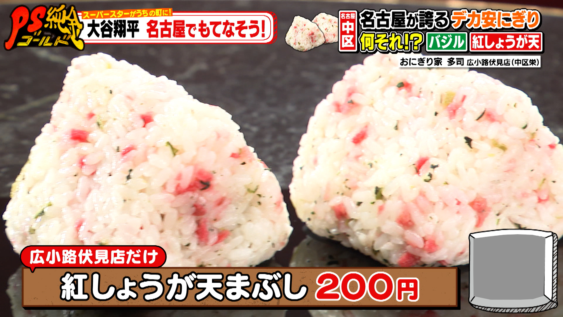 「小えび天まぶし(200円)」や「金ごましそひじき(210円)」なども人気で、広小路伏見店でしか食べられない「紅しょうが天まぶし(200円)」も。おにぎり好きという大谷さんに、ぜひとも食べてもらいたいおにぎりが勢ぞろいしていました!スタジオもそのボリュームとお値打ち価格に驚きを隠せないのでした。