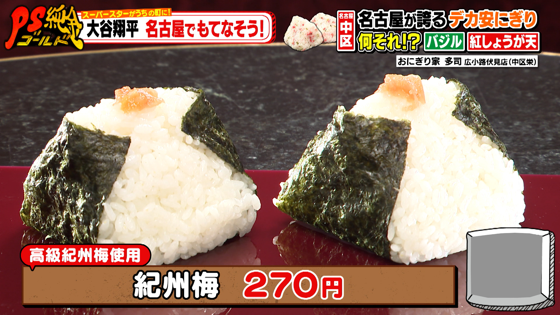 最後にやって来たのは、バンテリンドーム ナゴヤから車で約13分の『おにぎり家 多司 広小路伏見店』。町の人が「紀州梅(270円)がめちゃくちゃウマい」と教えてくれました。
