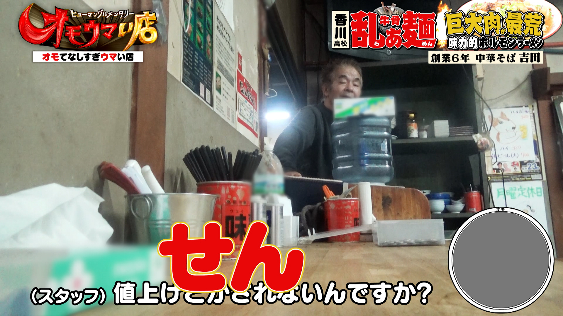番組スタッフが「値上げはされないんですか?」と、大将に聞いたところ「せん。安くてウマかったらどうにかなるわ」と値上げはしない方針のようです。