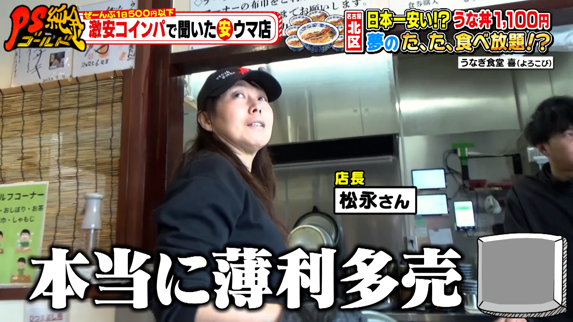 ほかにも「ひつまぶし(半尾・1,200円)」や「うなぎの肝焼き(800円)」などがあり、店長の松永さんは「本当に薄利多売。オールセルフのスガキヤスタイルで人件費を削減している」と安さのヒミツを話します。