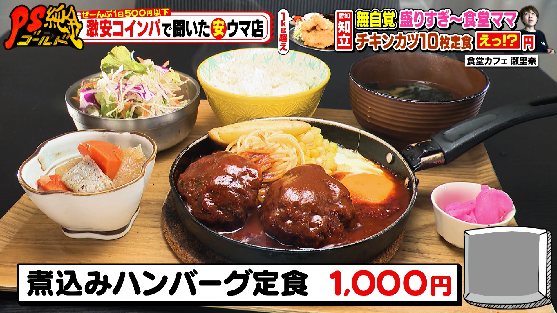 続いて教えてもらったのは、知立市の『食堂カフェ 瀬里奈』。お客さんによると、「煮込みハンバーグ定食(1,000円)」が安くておすすめなのだとか。