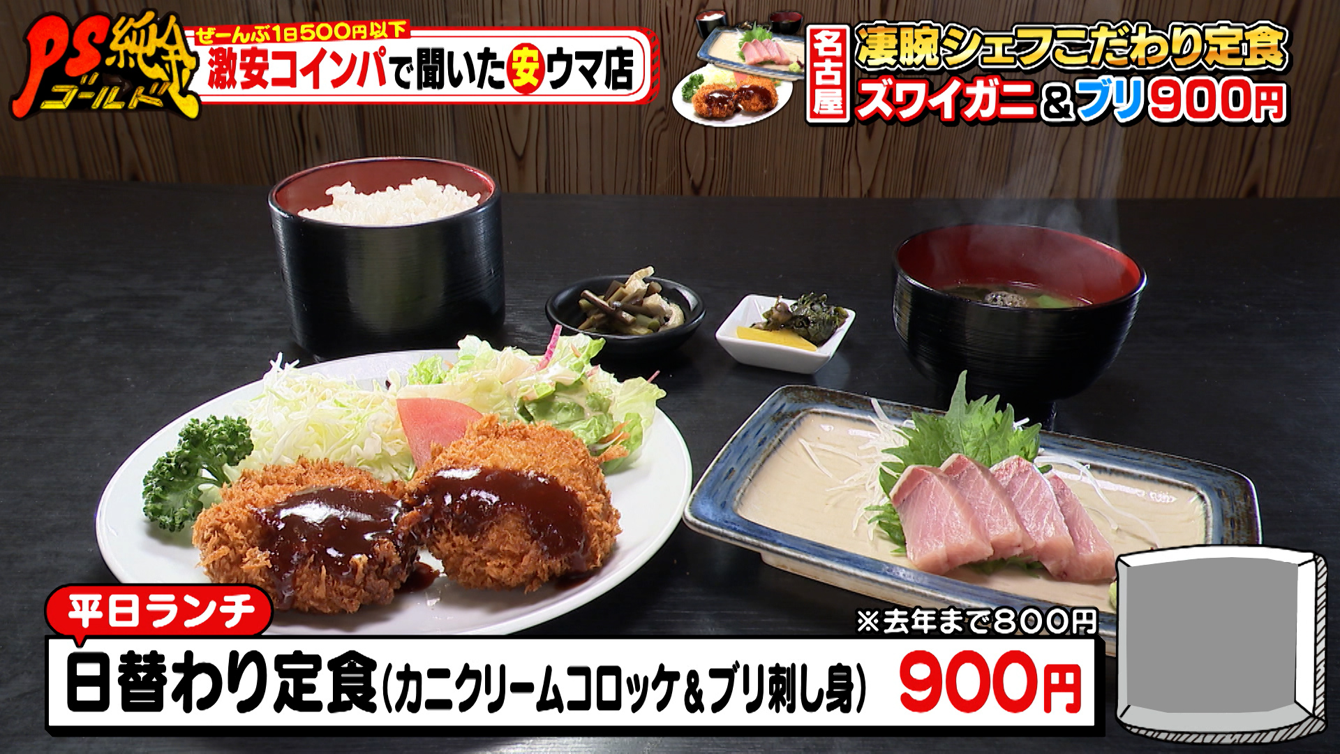 平日ランチの「日替わり定食(カニクリームコロッケ&ブリ刺し身・900円)」や「刺身定食(1,100円)」など、過去にフランス料理店で働いていた店主が腕を振るったランチをTV初取材!すべて手仕込みのこだわりが詰まった料理に、これまで2000回以上来店したというお客さんもいるほどです。