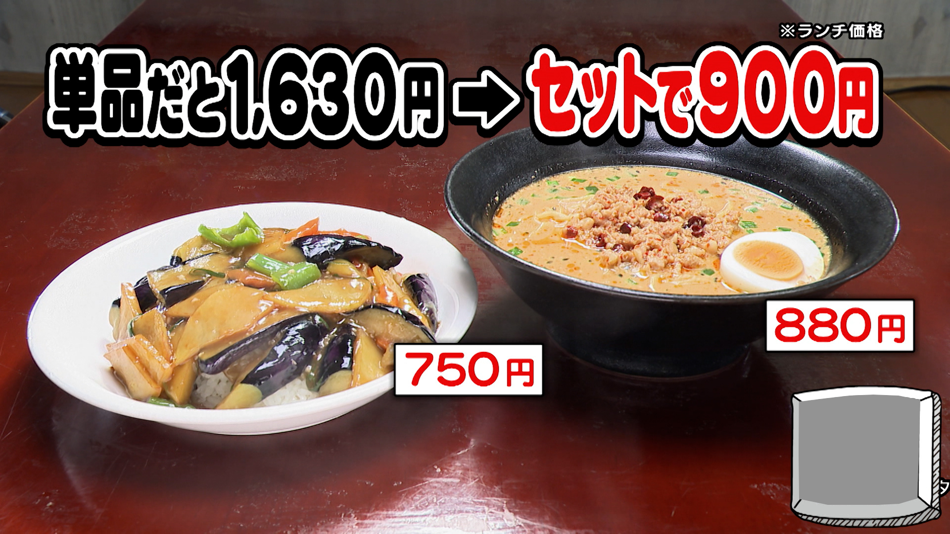 お客さんのおすすめという「ナス飯(750円)」。「担々麺(880円)」と一緒に注文し、どちらも大盛りにしてもらいますが、セットで900円というから驚きです。「ちょっとやりすぎじゃない?」と、ゲストの水田さんが思わず声を上げます。