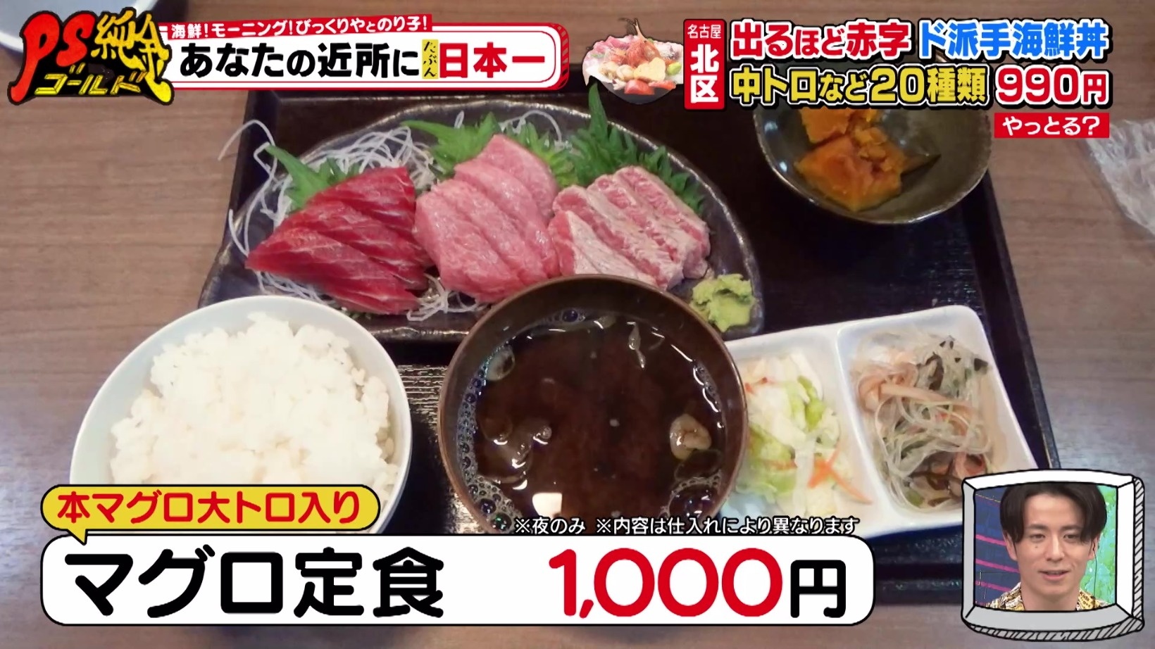 「マグロ定食 1,000円」※夜のみ ※内容は仕入れにより異なります