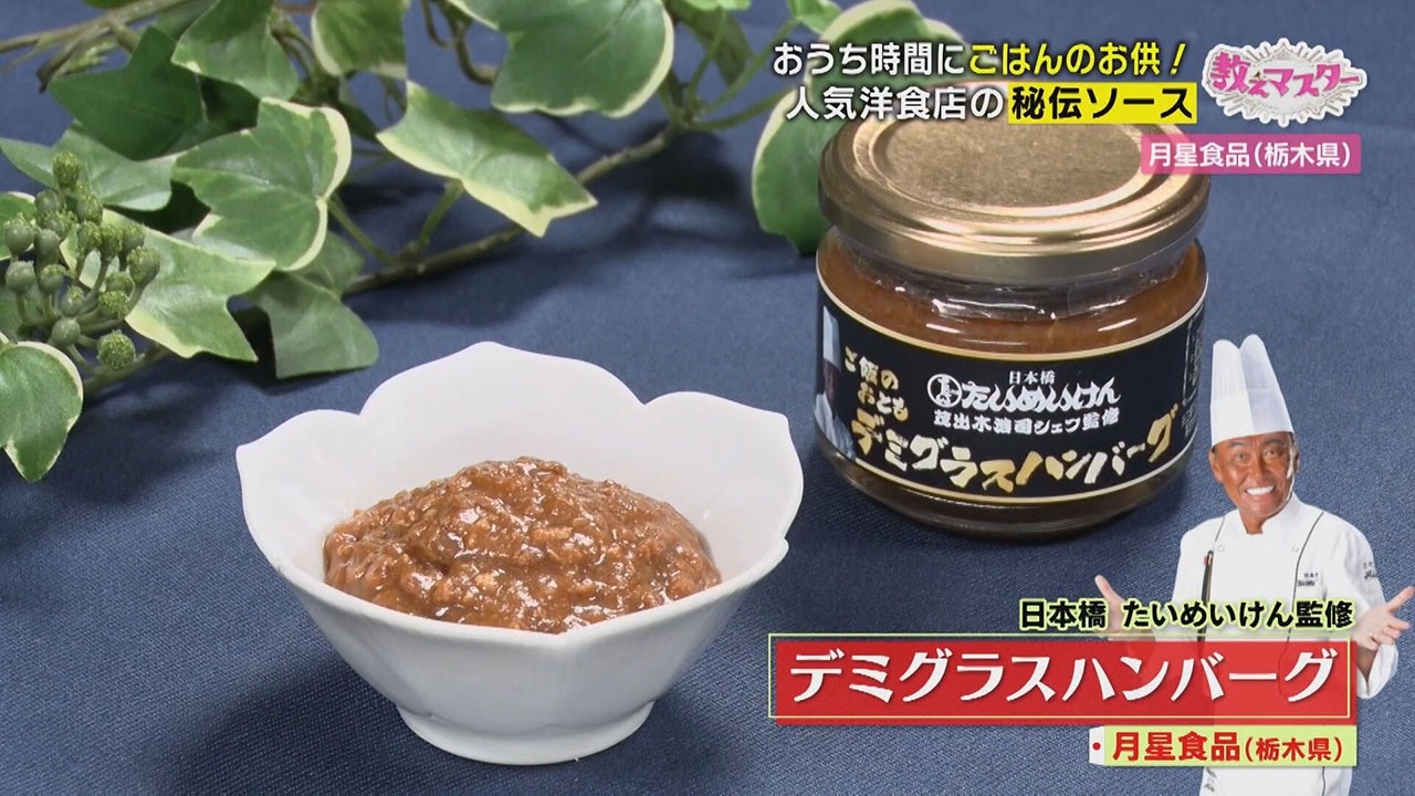 マスター:デミグラスハンバーグを挽き肉ソースのようにした、食べるとハンバーグ風の味になる商品です。【たいめいけん】茂出木シェフと栃木県の月星食品が共同開発しています。