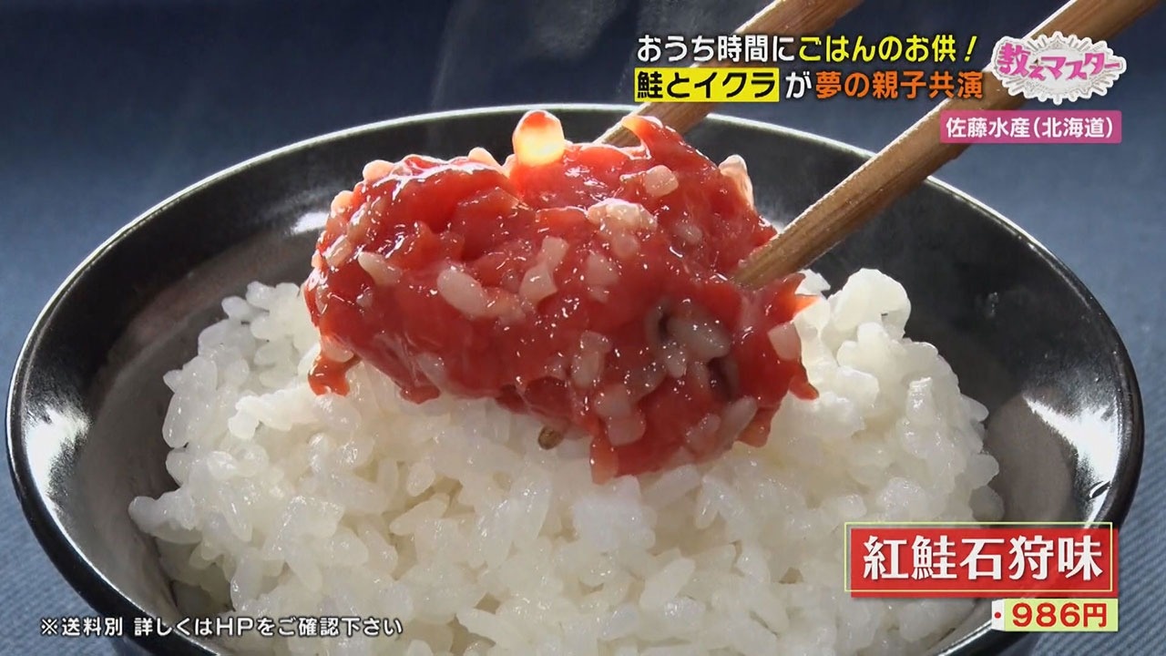 マスター:続いては、お手頃価格の海の幸グルメ。北海道【佐藤水産】の『紅鮭石狩味(110g /986円)』です。