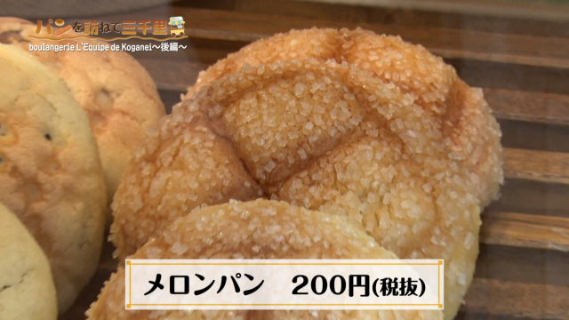 メロンの濃縮シロップを使ったふわっとしっとりのメロンパン。ザラメがまぶされたクッキー生地に思わずかぶりつきたくなります。