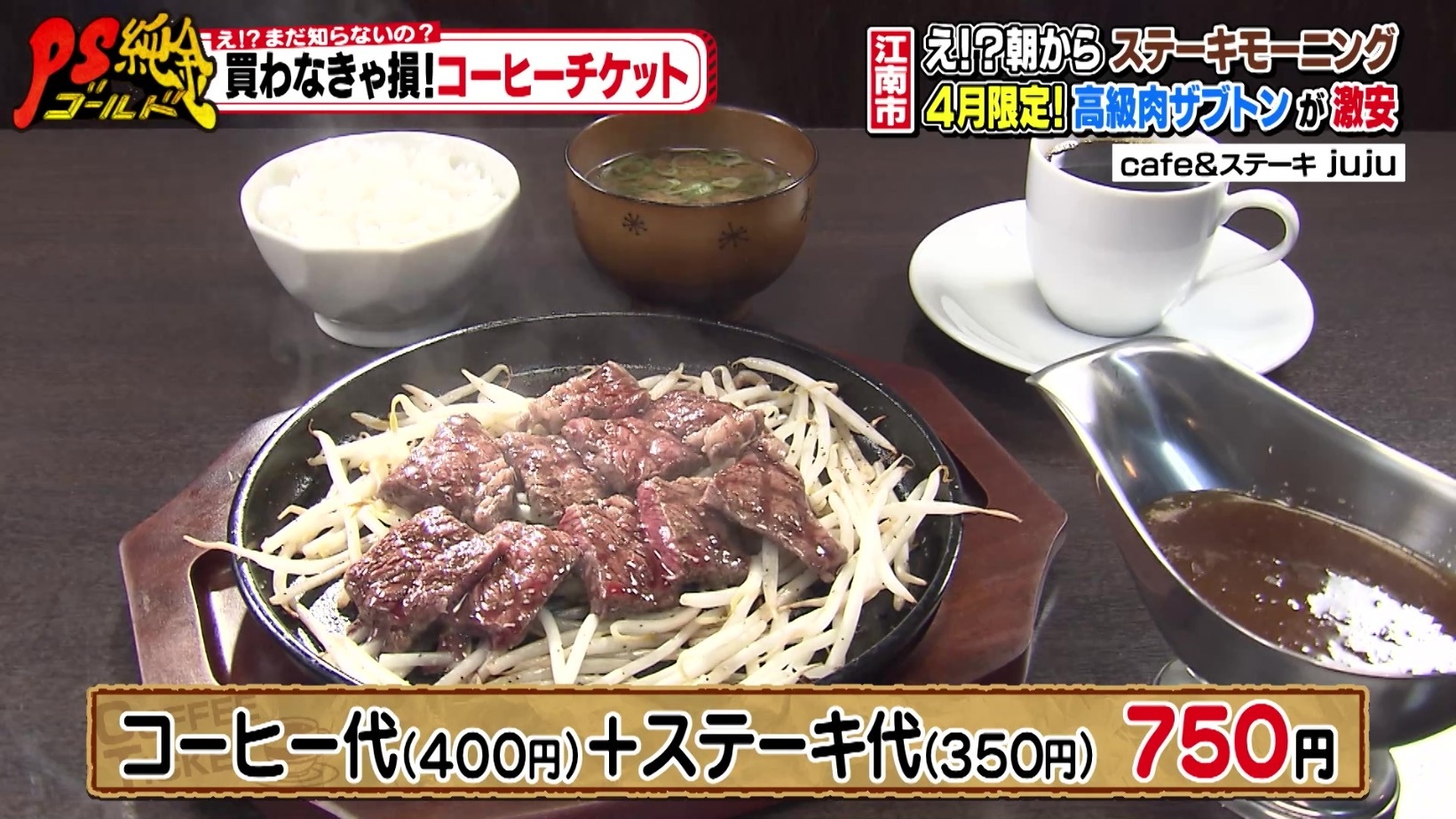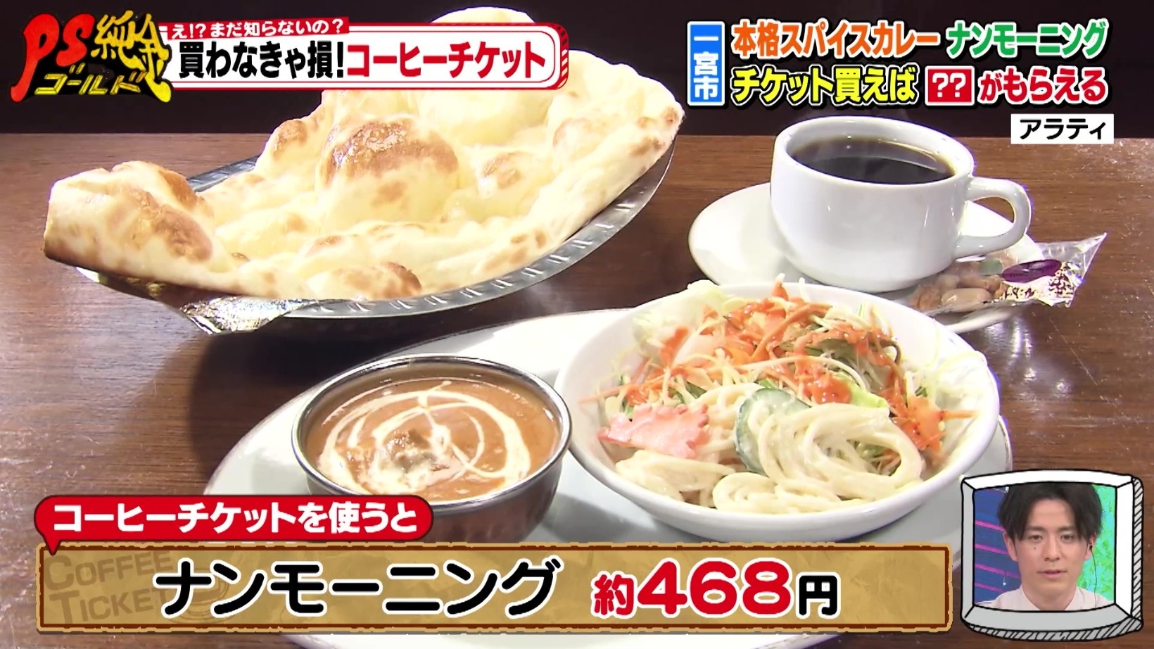 『PS純金(ゴールド)』買わなきゃ損の「コーヒーチケット」!本格インドカレーモーニング&激安ステーキモーニング