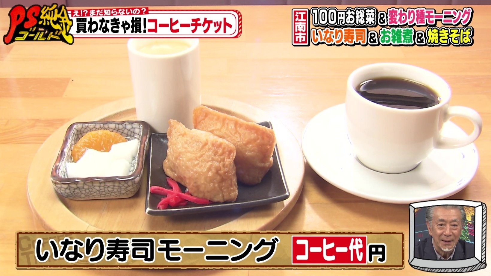 「いなり寿司モーニング 400円」※ホットコーヒーの場合
