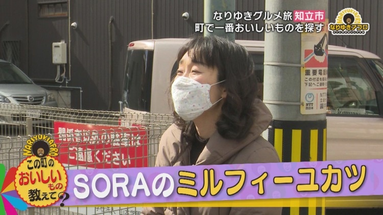 和菓子店の撮影を終えると、通りかかった車の中から手を振る女性が。車から降りてきてくれ、早速、知立市のおいしいものを聞くと『カフェレストSORAのミルフィーユカツ』と教えてくれました。カツはやわらか。野菜にもこだわり、気さくな奥さまと優しい旦那さまとのご夫婦で経営するお店だとか。