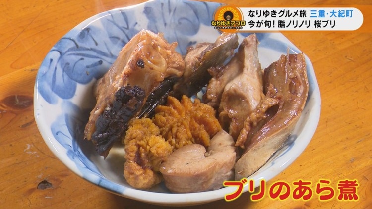 さらに、頭や卵など、捨てるところがないブリのアラを鍋一杯に入れて炊く『ブリのあら煮』も登場。「ふわふわ。丹精込めて作ったタレの味が染み込んでる。家庭的な味なんだけど、高級感もある!」と大喜びです。大紀町に住む方の特権・この時季しかない桜ブリを食べられてラッキー!!