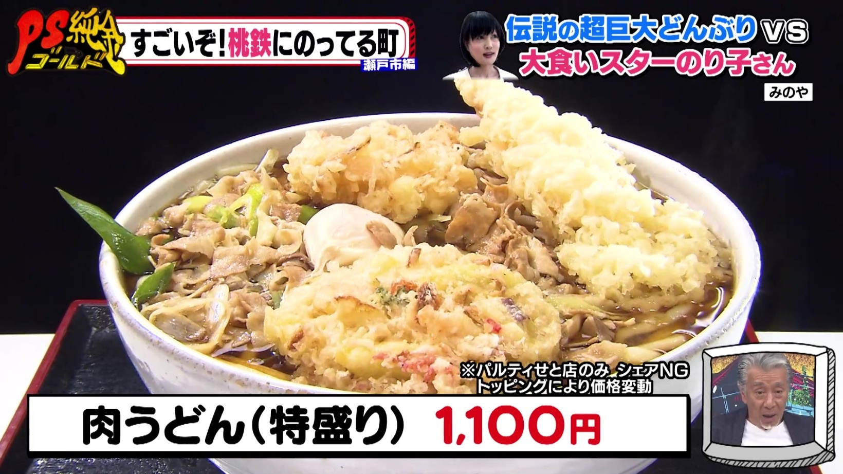 そんな「みのや」の大盛りの肉うどんを食べに、『PS純金(ゴールド)』でおなじみの岐阜の大食いスター・大盛のり子さんが来店!大食いとは知らず、店主は細身なのり子さんを見て、「若いお姉さんだから」と少しだけ多めに盛り付けます。