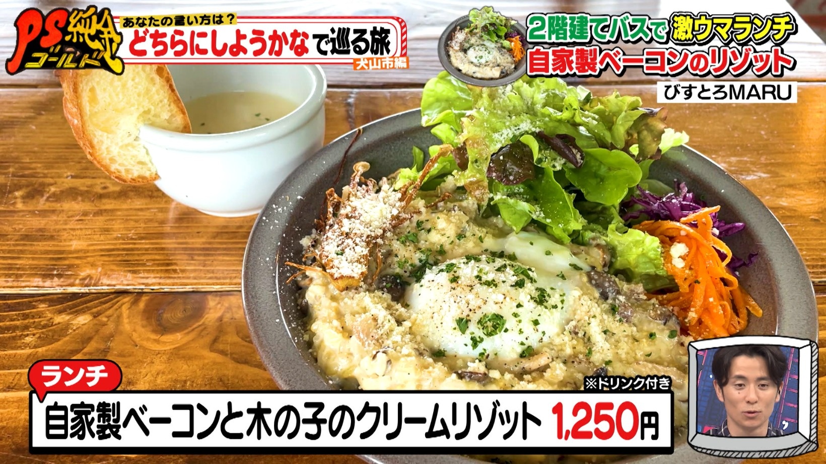 愛知県犬山市『びすとろMARU』2階建てバスでランチ!?自家製ベーコンと木の子のクリームリゾット1,250円