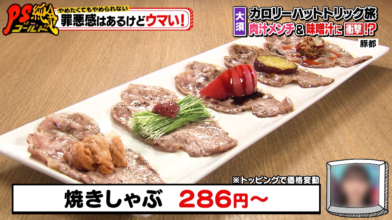 「焼きしゃぶ286円~」※トッピングで価格変動