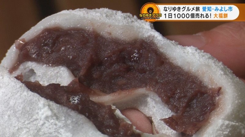 すると、「いつも観てまーす!」と、いつもこの公園にランニングに来ているという女性が声をかけてくれました。みよし市で一番美味しいものを尋ねてみると、教えてくれたのは、『美好(みよし)餅』というお店の「大福」。