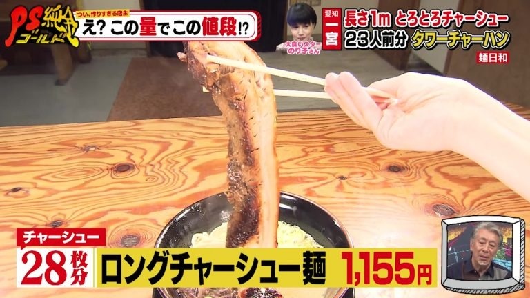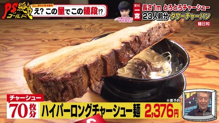 ここでの作りすぎメニューは、しょうゆダレで4時間煮込んだ巨大チャーシューが乗ったラーメンです。