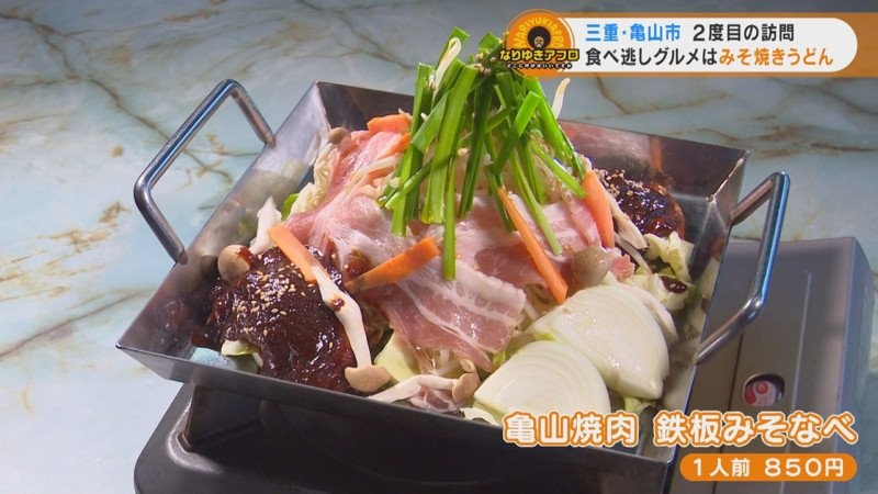 続いては三重県・亀山市。番組開始当初の、2019年5月にお邪魔した町です。その時に食べ逃したグルメをいただきに、亀山関宿にほど近い『川森食堂』へ。3代続く老舗の食堂にある、この町の食べ逃しグルメを聞くと、「それは『亀山みそ焼きうどん』です」と、お店の3代目Kさん。