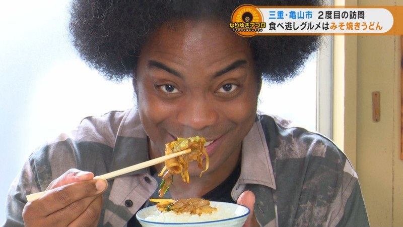 アフロヘアーがトレードマークの副島淳くんがリポートする、金曜日の人気コーナー『なりゆきアフロ』は、東海地方の125市町村を巡り、出会った人に聞いた「町の美味しいもの」をその場所へ行って味わう“なりゆきグルメ旅”。