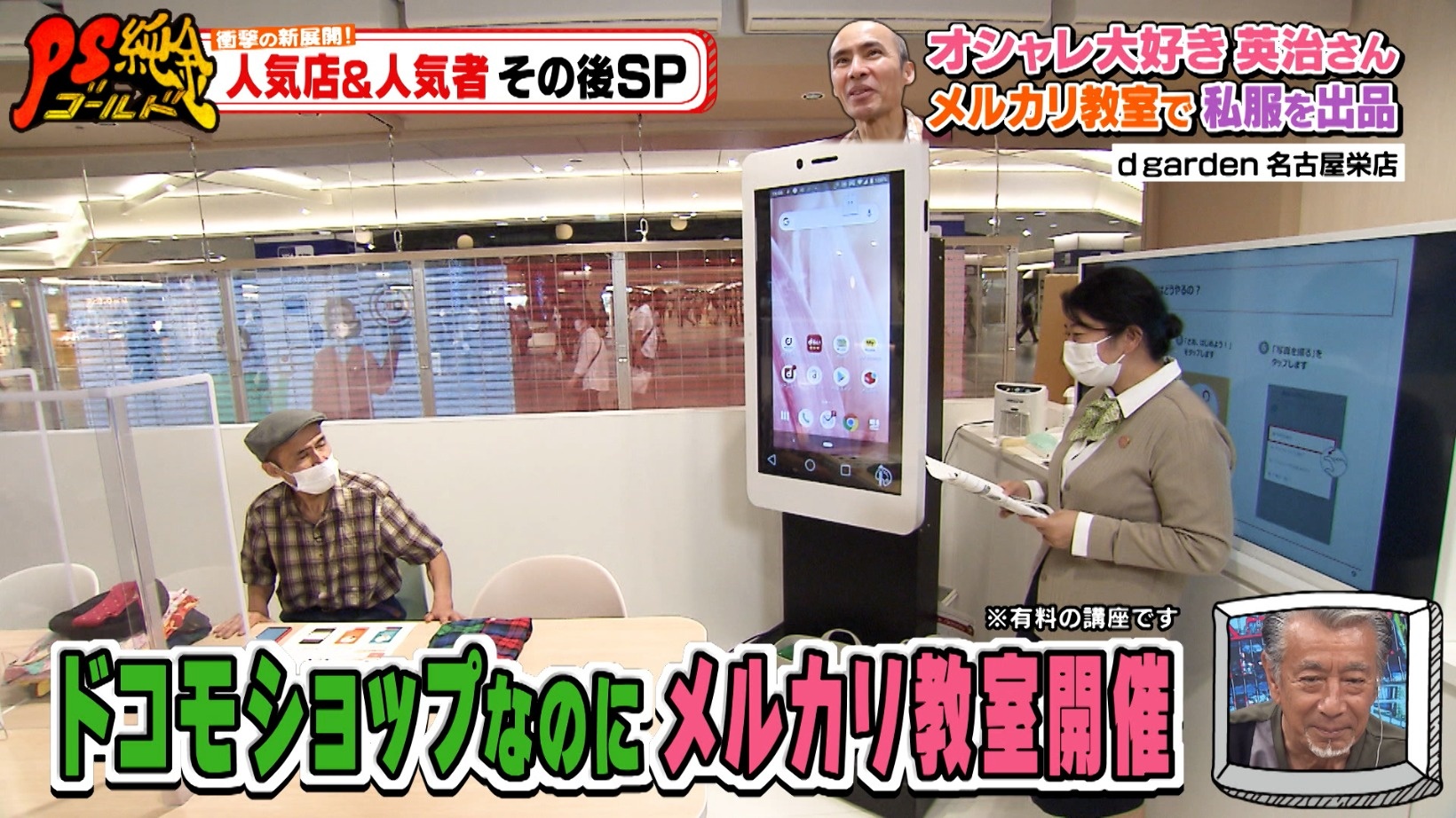 ここでは通常のドコモショップサービスのほか、「メルカリ教室」も開催。英治さんは慣れないスマホ操作にも真剣な表情で取り組みます。