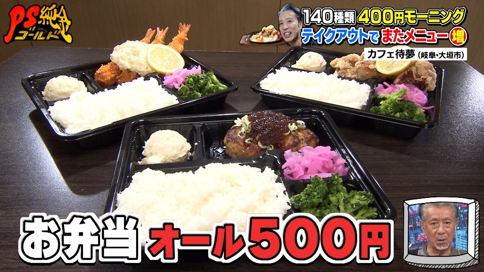 約15種類の弁当メニューは全品500円!さらに、持ち帰り用の麺類やハンバーガーも含めると、合計180種類ものメニュー数になります。これには藤森も、「お願いだからメニュー減らして、値段上げてくれ!」と店主を心配します。
